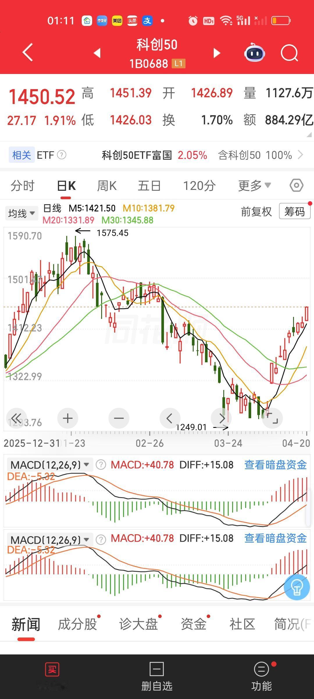 科创50,1575.45/1450.52=1.0861,还差8.61%。