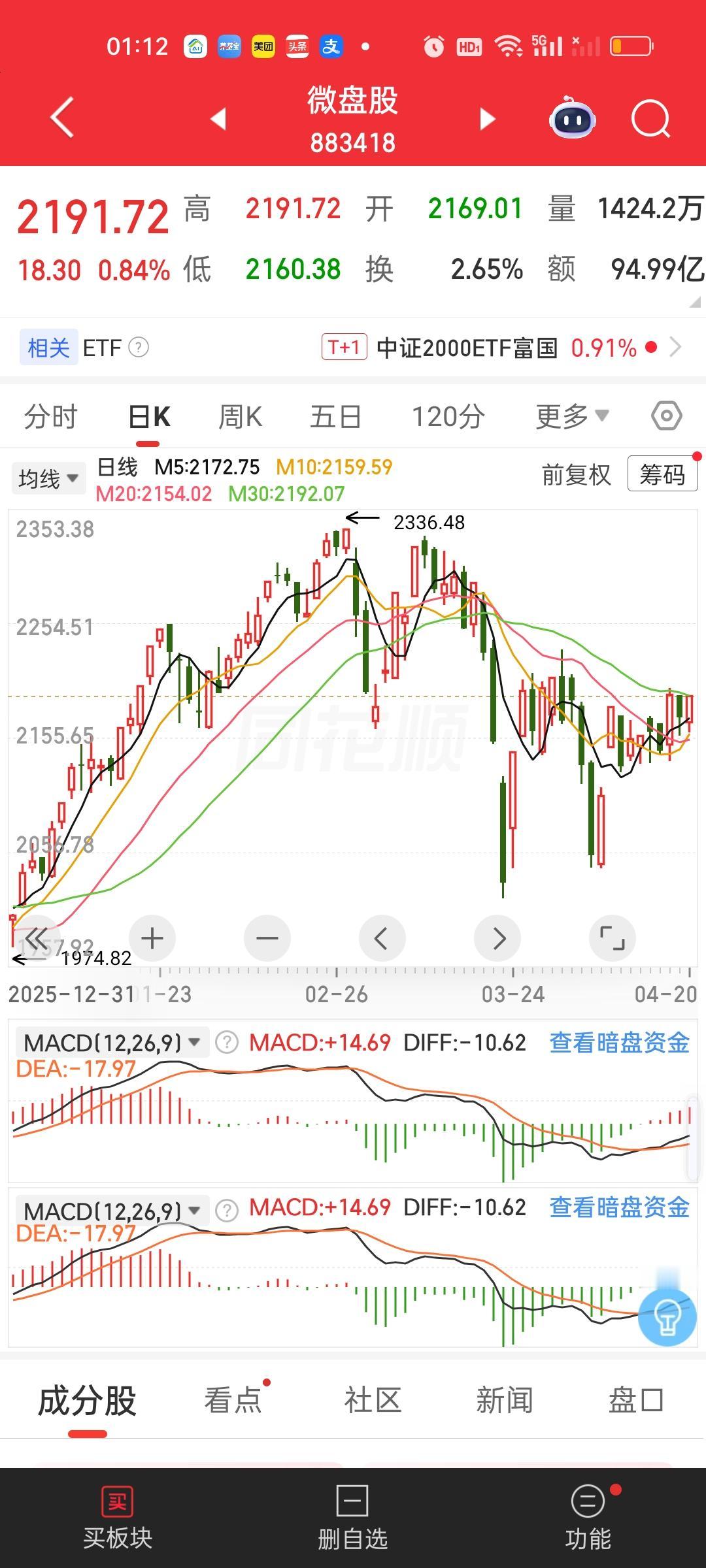 微盘股,2336.48/2191.72=1.0660,还差6.60%。