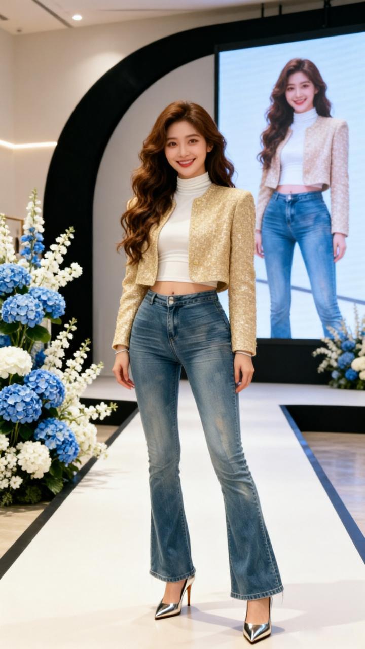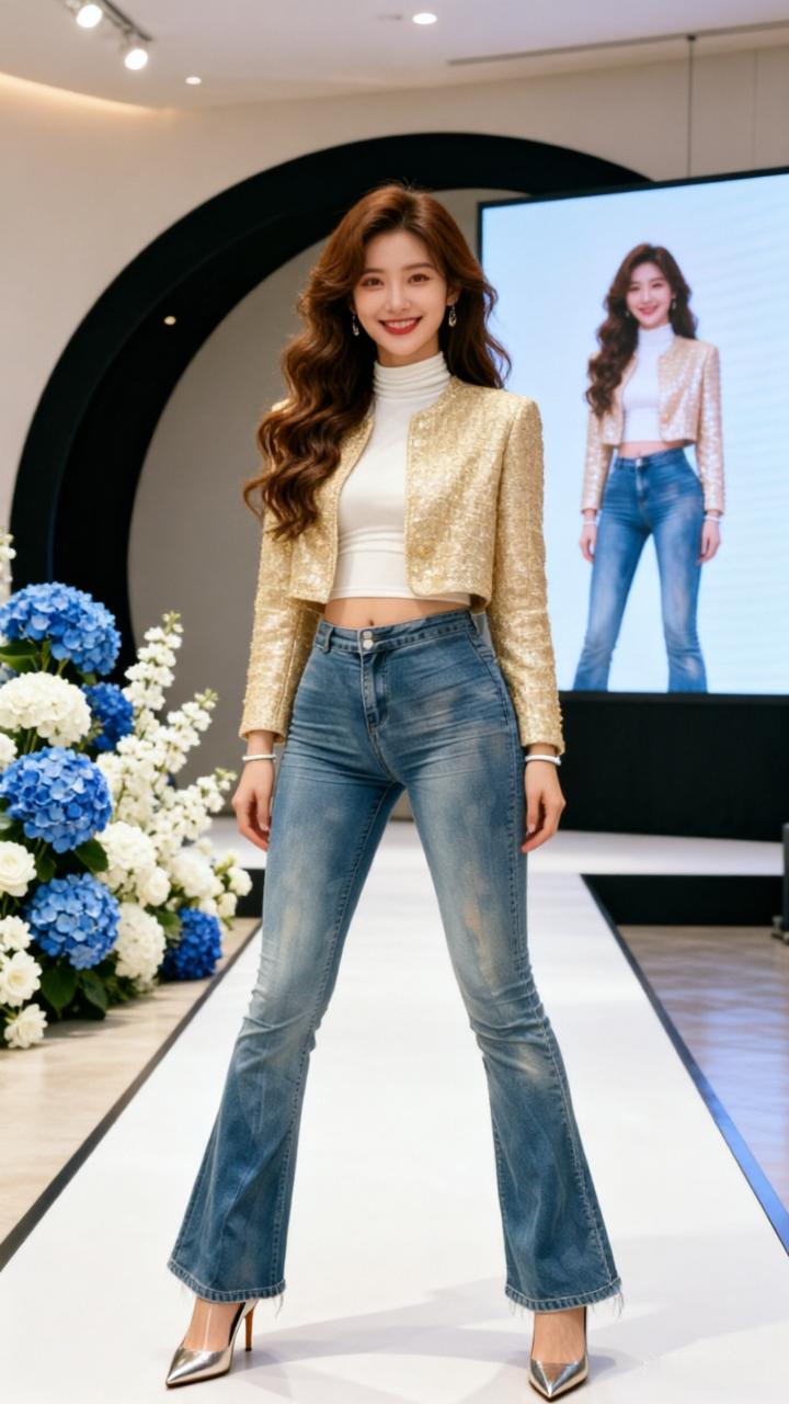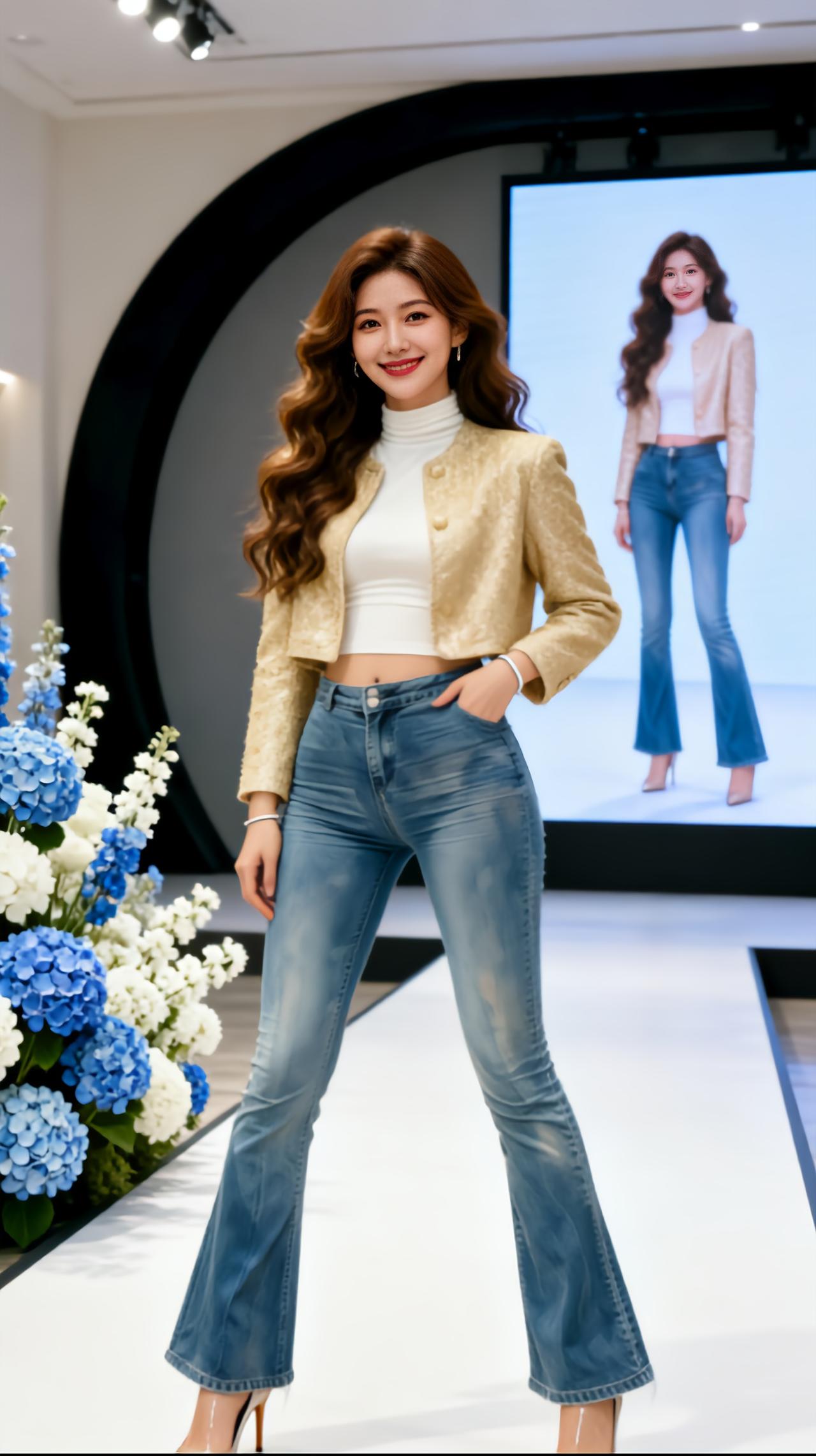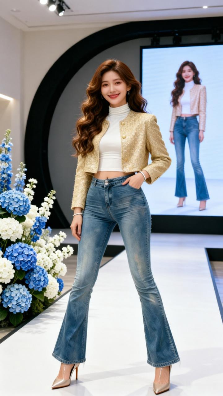 牛仔阔腿裤的百变魅力 直筒显瘦秀场同款长裤 微喇裤时尚魅力 大秀穿搭 贵气牛仔裤