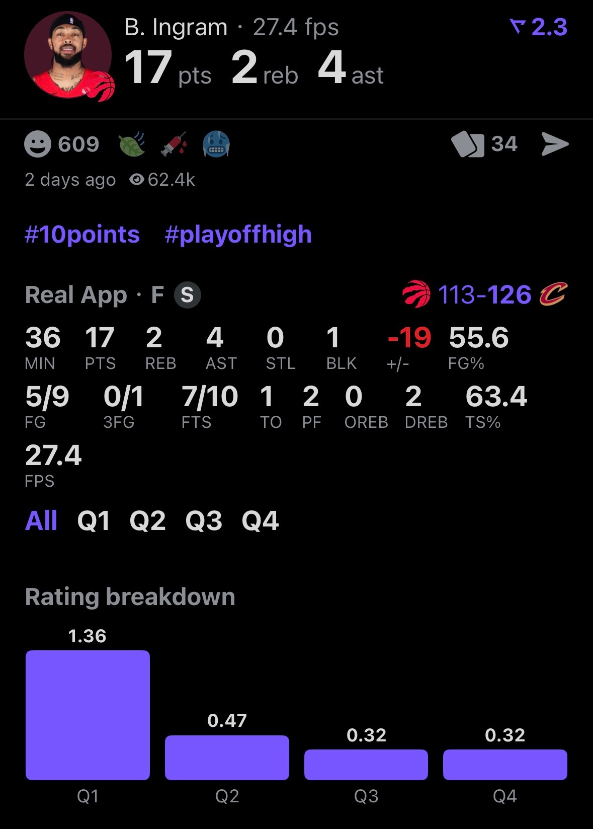 英格拉姆上场比赛说出手太少 本场比赛15次出手