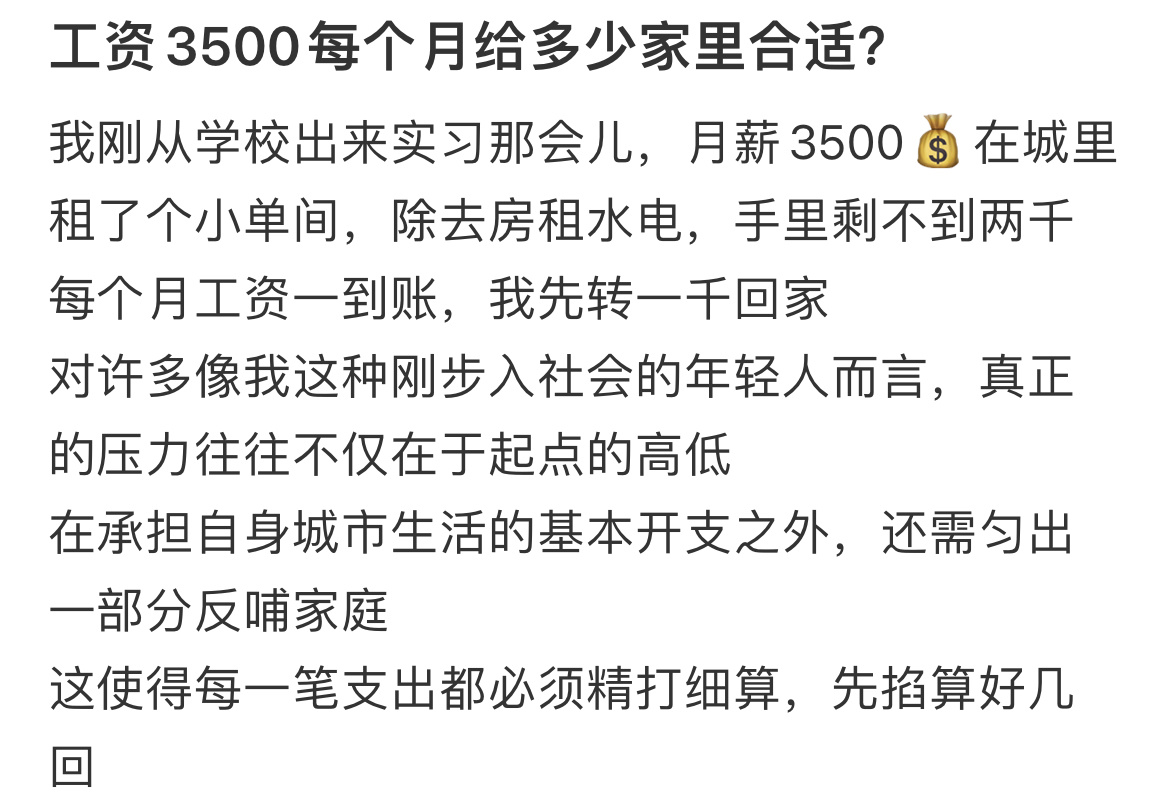 工资3500每个月给多少家里合适?