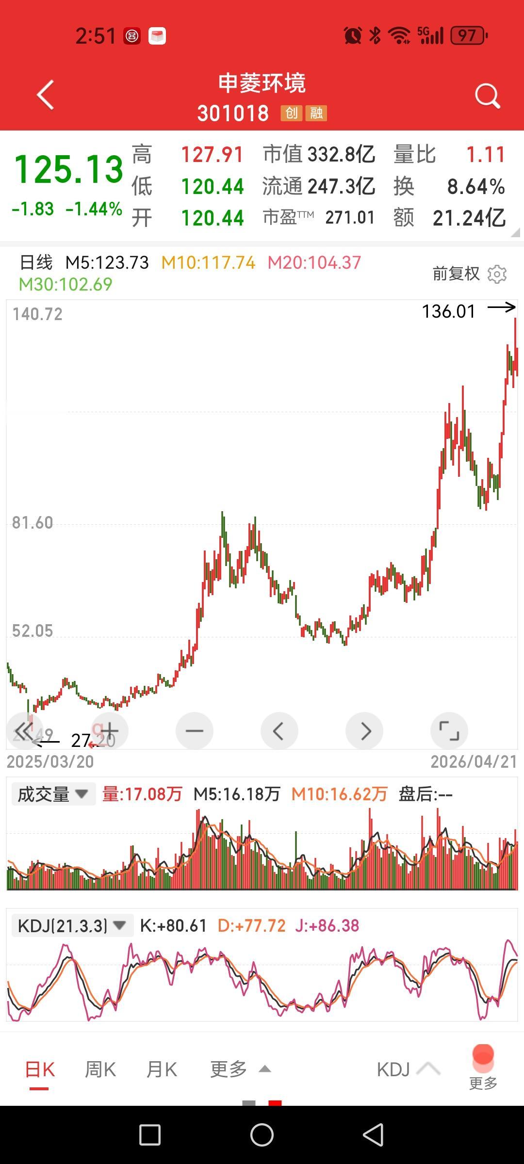 看看总利润仅其十分之一、每股收益仅其五分之一(预估)的申菱环境,股价创出136元的高点。