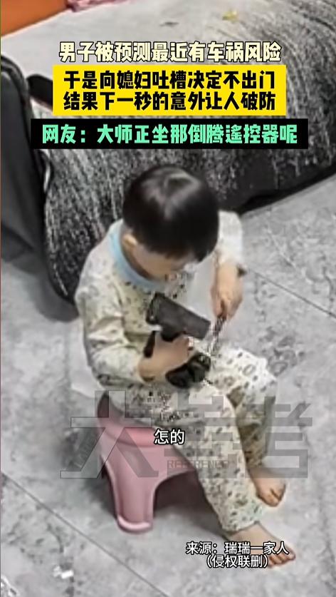信息来源:《近日辽宁鞍山 男子被预测最近有车祸风险,于是向媳妇吐槽决定不出门,结果下一秒的意外让人破防。网友:大师正坐那倒腾遥控器呢》大参考