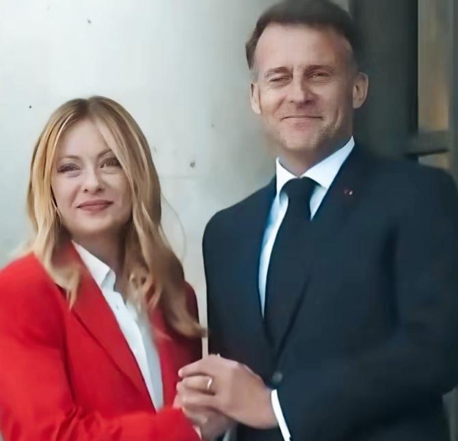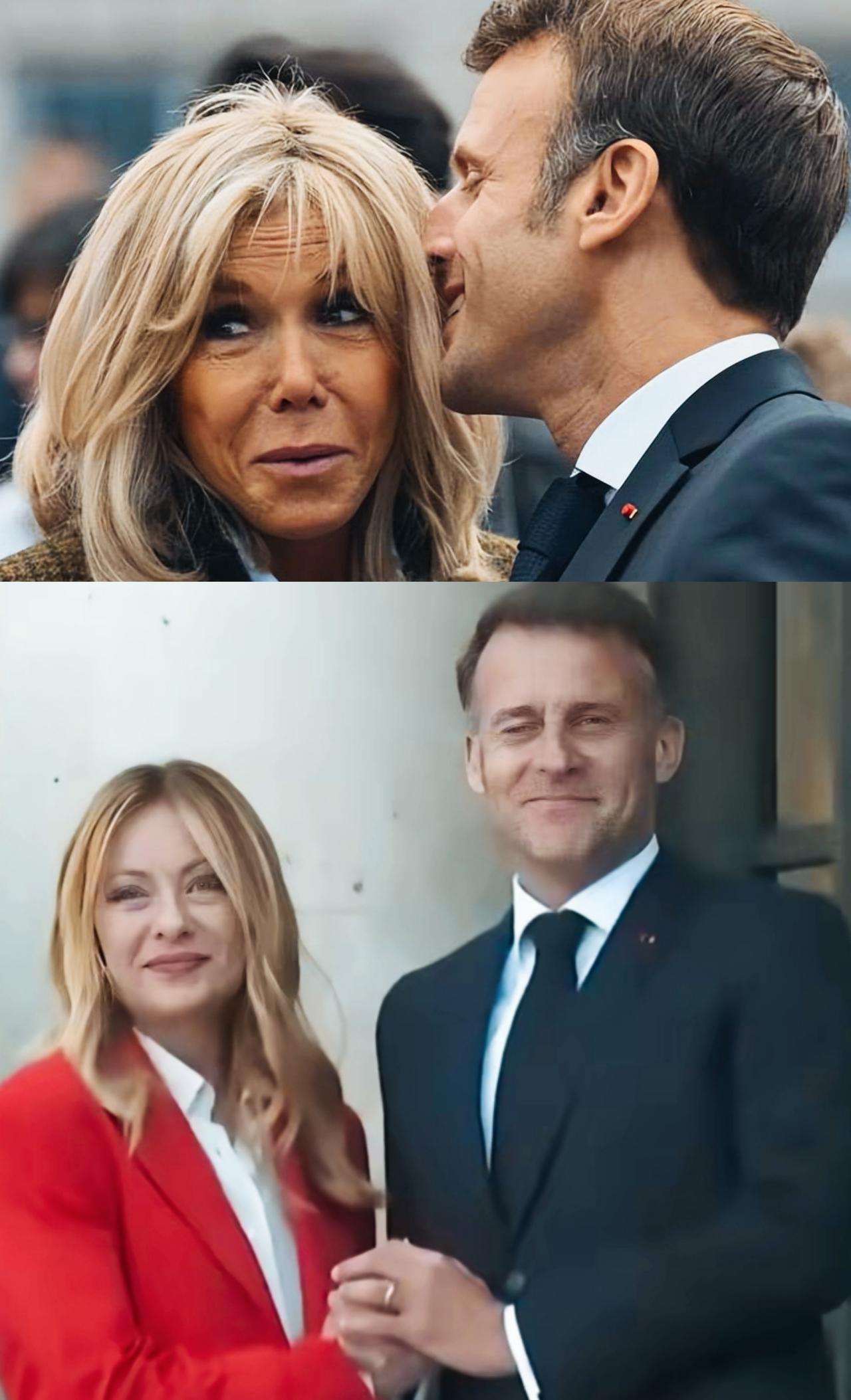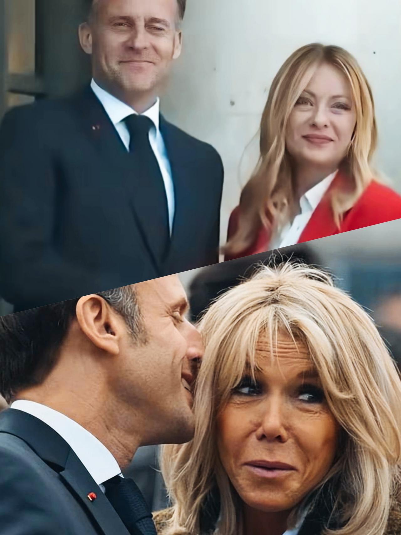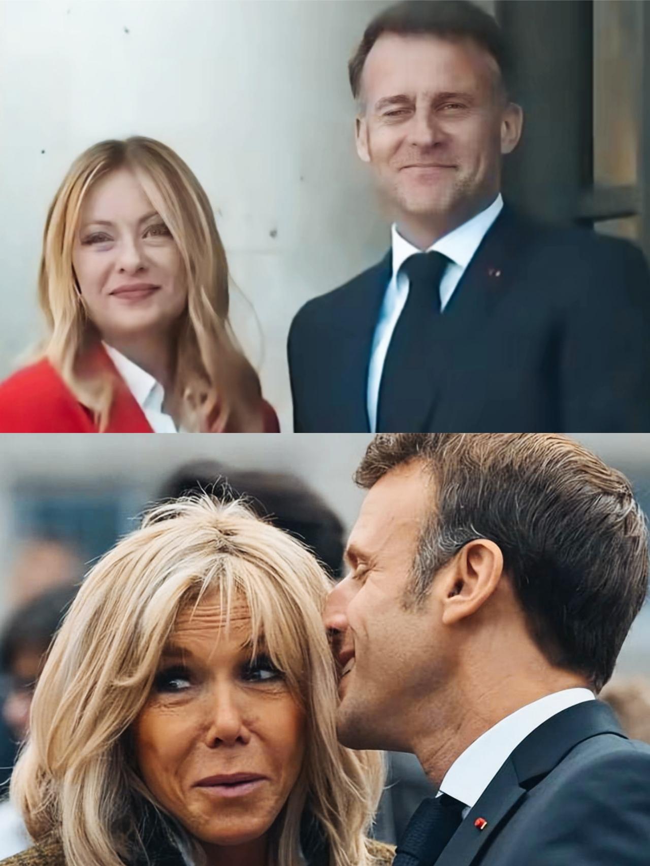 马克龙和妻子布丽吉特在一起时,笑的真诚呢?还是和梅洛尼在一起时笑的真诚呢? 马克