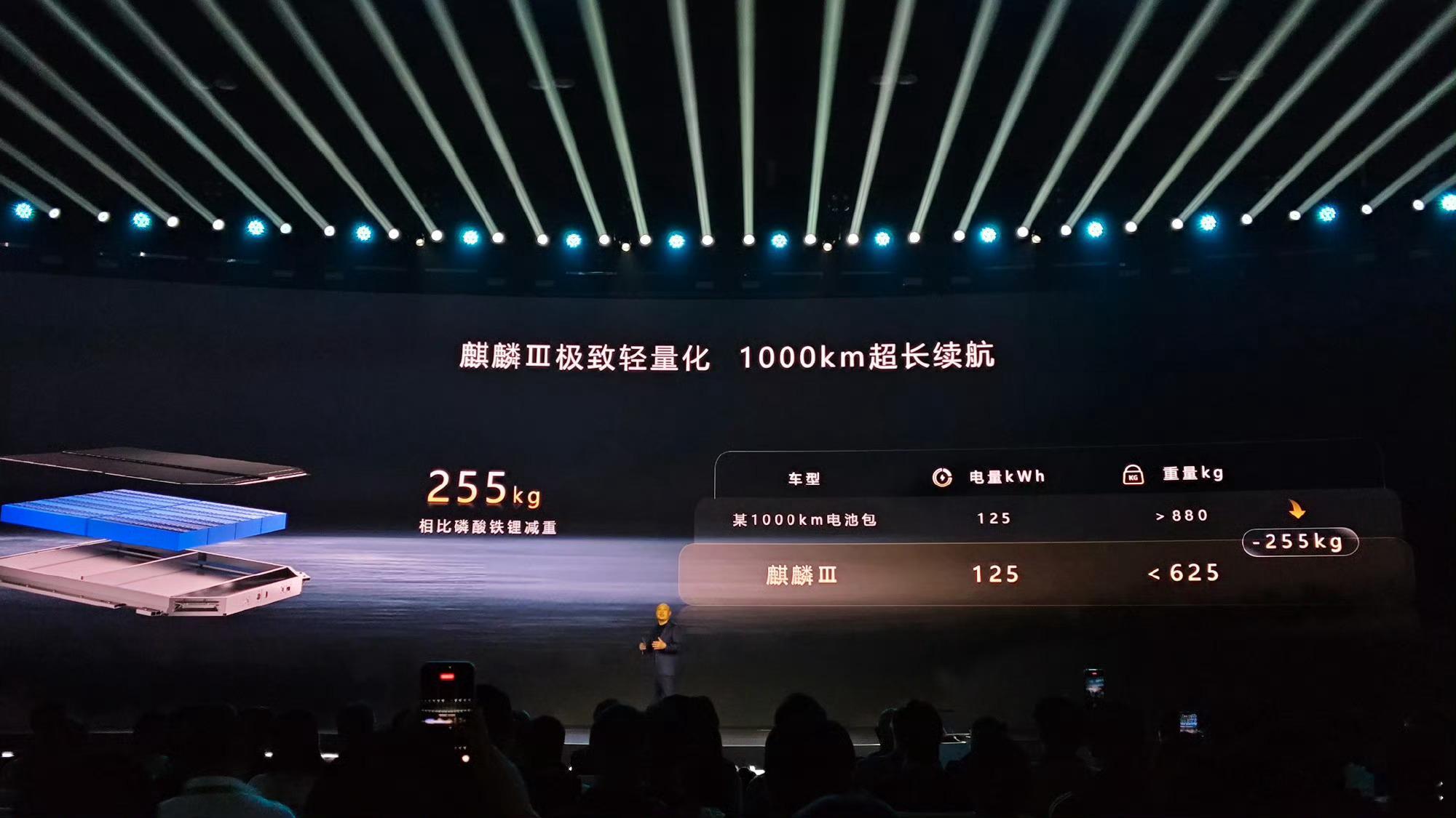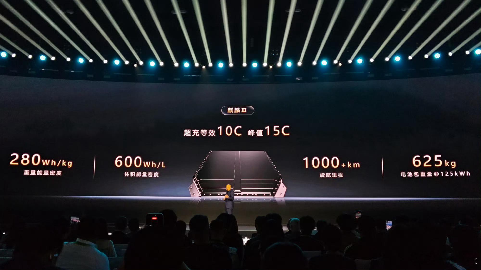第三代麒麟电池,能量密度达到280Wh/kg,续航来了1000公里,而且更轻更安全。