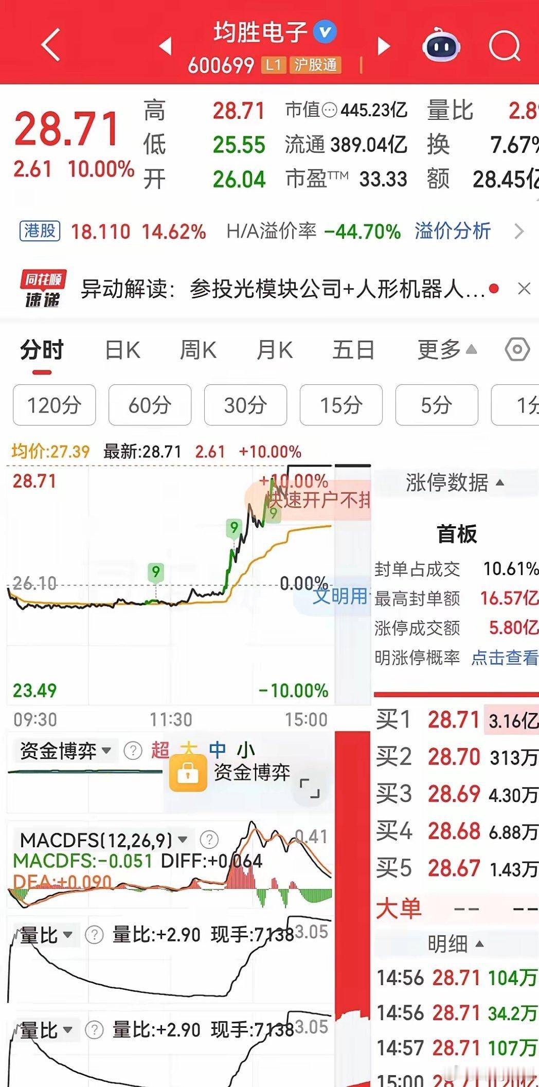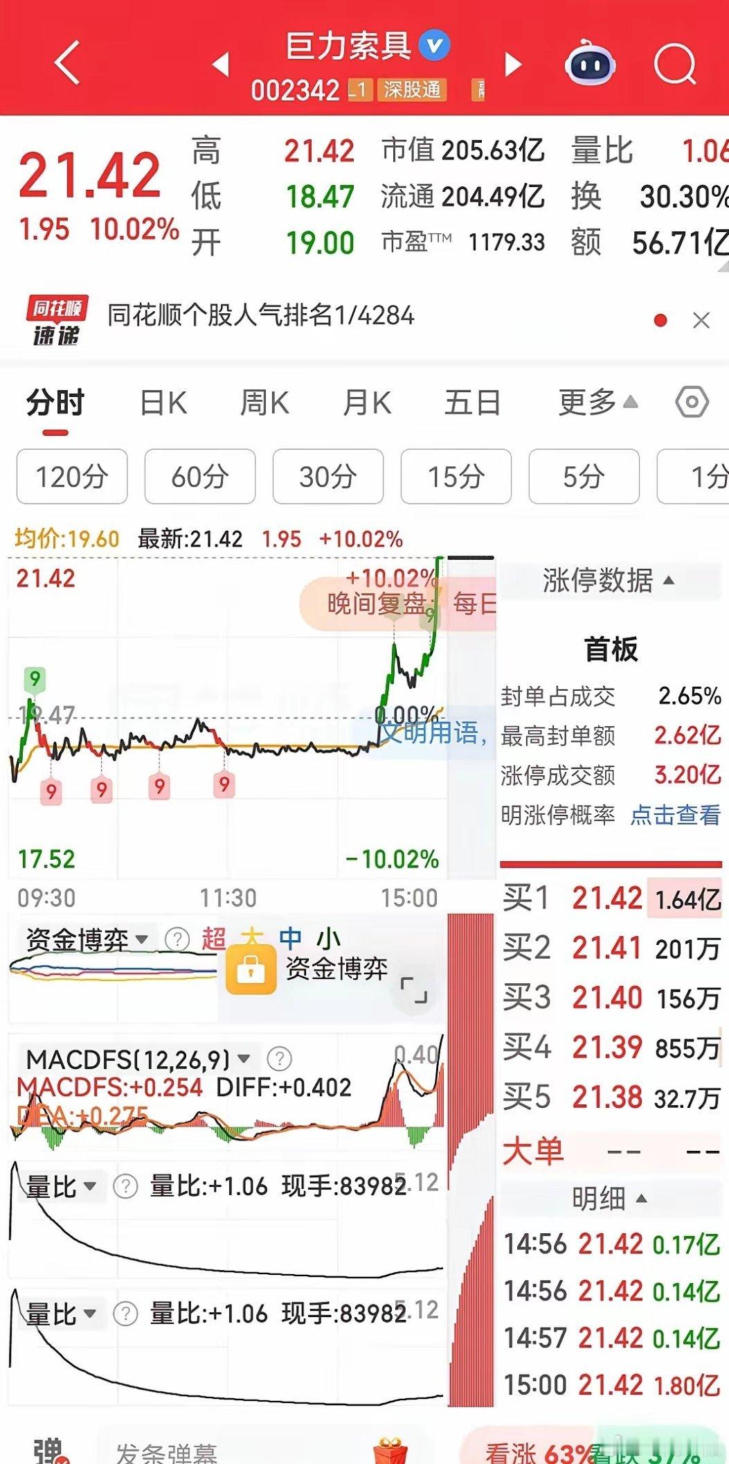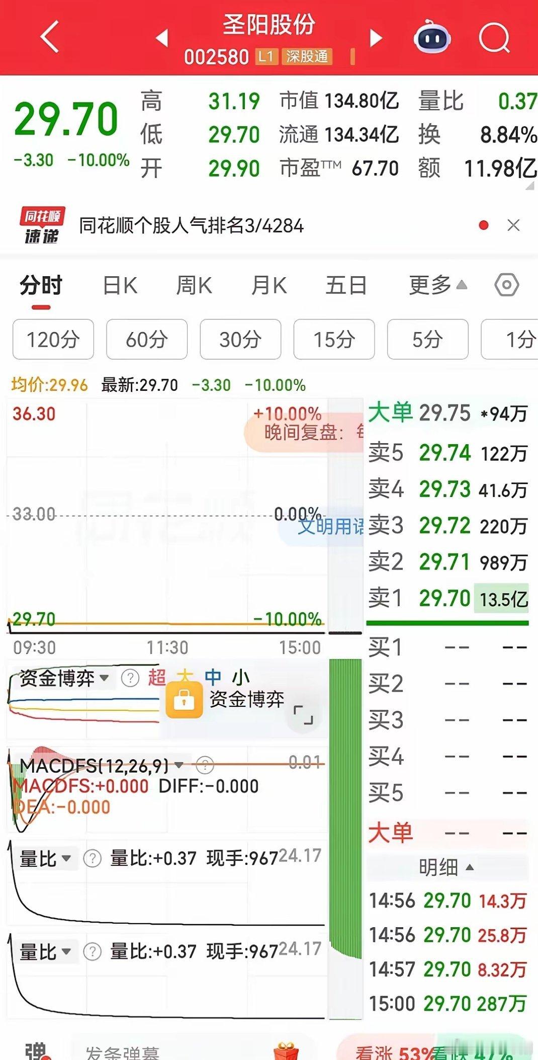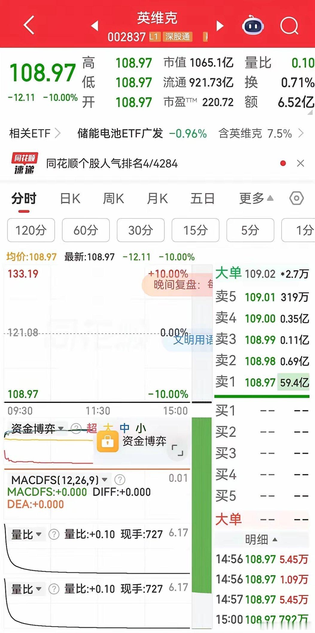 英维克因业绩大幅下滑一字跌停,跌停板封单资金高达59.40亿元,创下本月最大封单