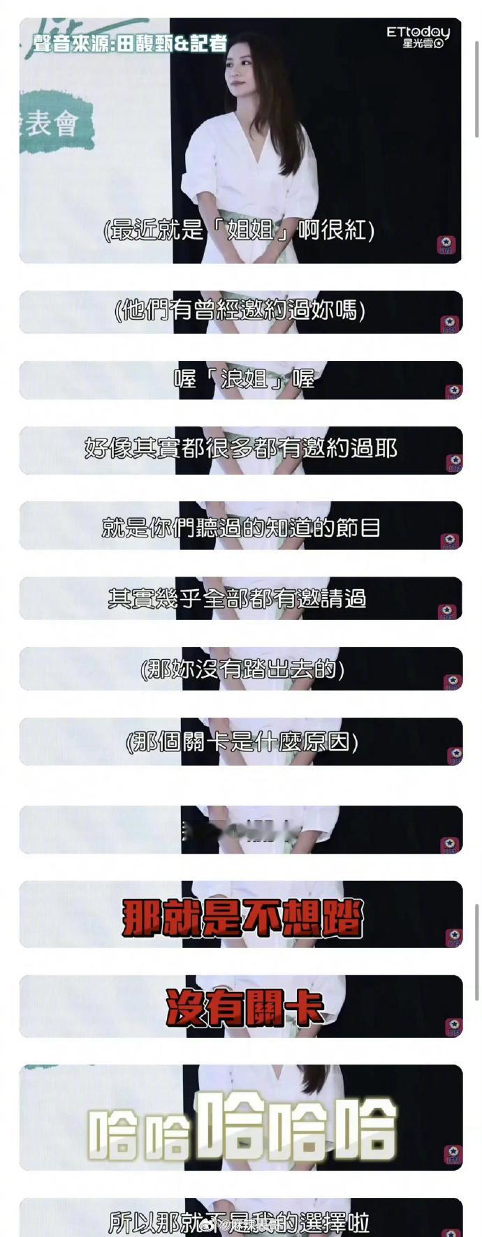 前几天,Hebe田馥甄说内地除了《浪姐》之外的节目其实都邀请过她,对她来说没有去就是因为自己不想去。