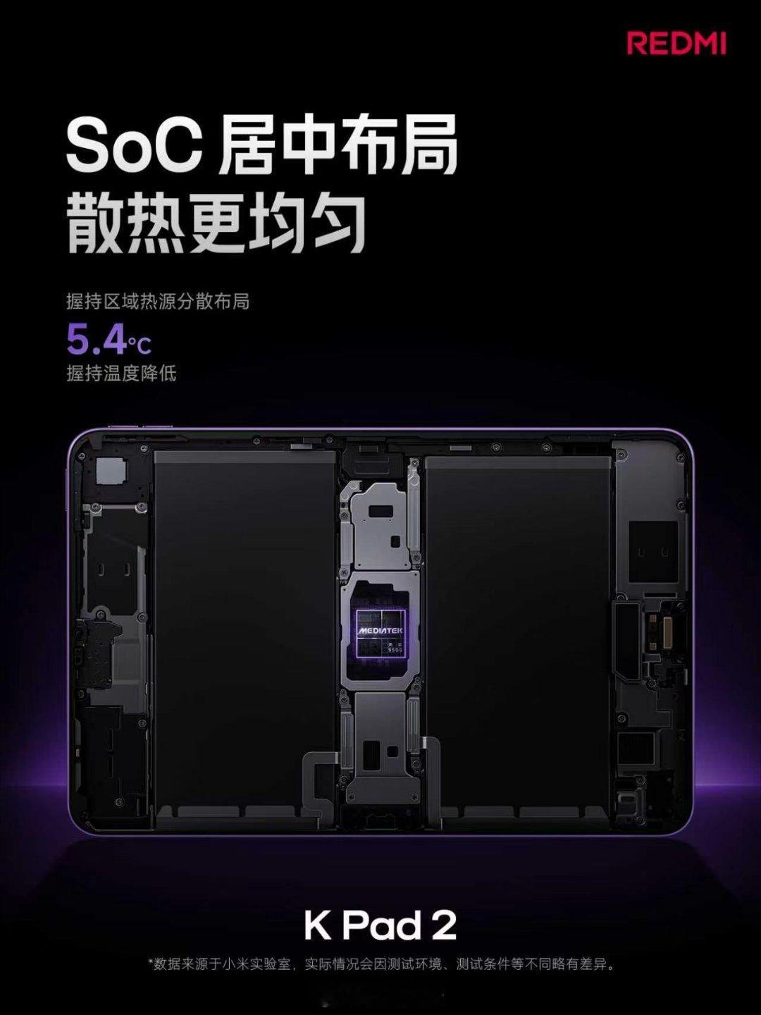 REDMI K Pad 2 搭载 天玑9500 正代旗舰芯升级 15300mm² 超大铝合金液冷 VCSoC 居中摆放,散热更均匀,游戏手感更好FPS 游戏大战场实测 3 小时,持久满帧拥有 9100mAh 大电池,双 USB-C 接口边玩边充不发烫,想怎么玩就怎么玩!红米K90Max发布会