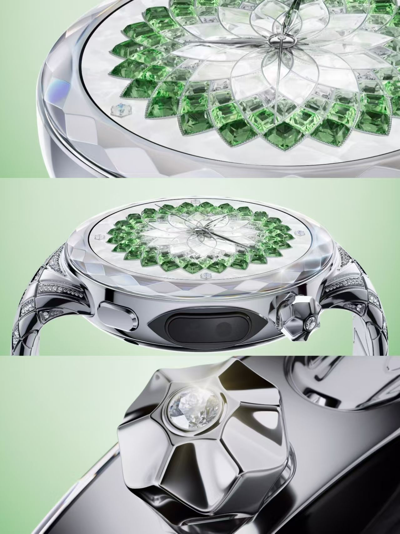 人的心情是可以突然变好的国际珠宝设计界的标杆人物Francesca Amfitheatrof,在结束了与LV的七年长跑合作后,选择了华为开启了她设计新篇章。HUAWEI WATCH ULTIMATE DESIGN 非凡大师 星钻绽放款,超模刘雯同款。外观上,以斐波那契曲线演绎绽放主题,星环蓝宝石玻璃表圈经微米级一体化钻切工艺,兰花表冠镶嵌中央天然钻石;超硬银色镀膜高光钛表体。智慧体验全面升级:腕上小艺语音控车、车表联动迎宾灯语+手势操控、eSIM独立通话。华为星钻手镯表既是高定珠宝,也是全天候健康管家。
