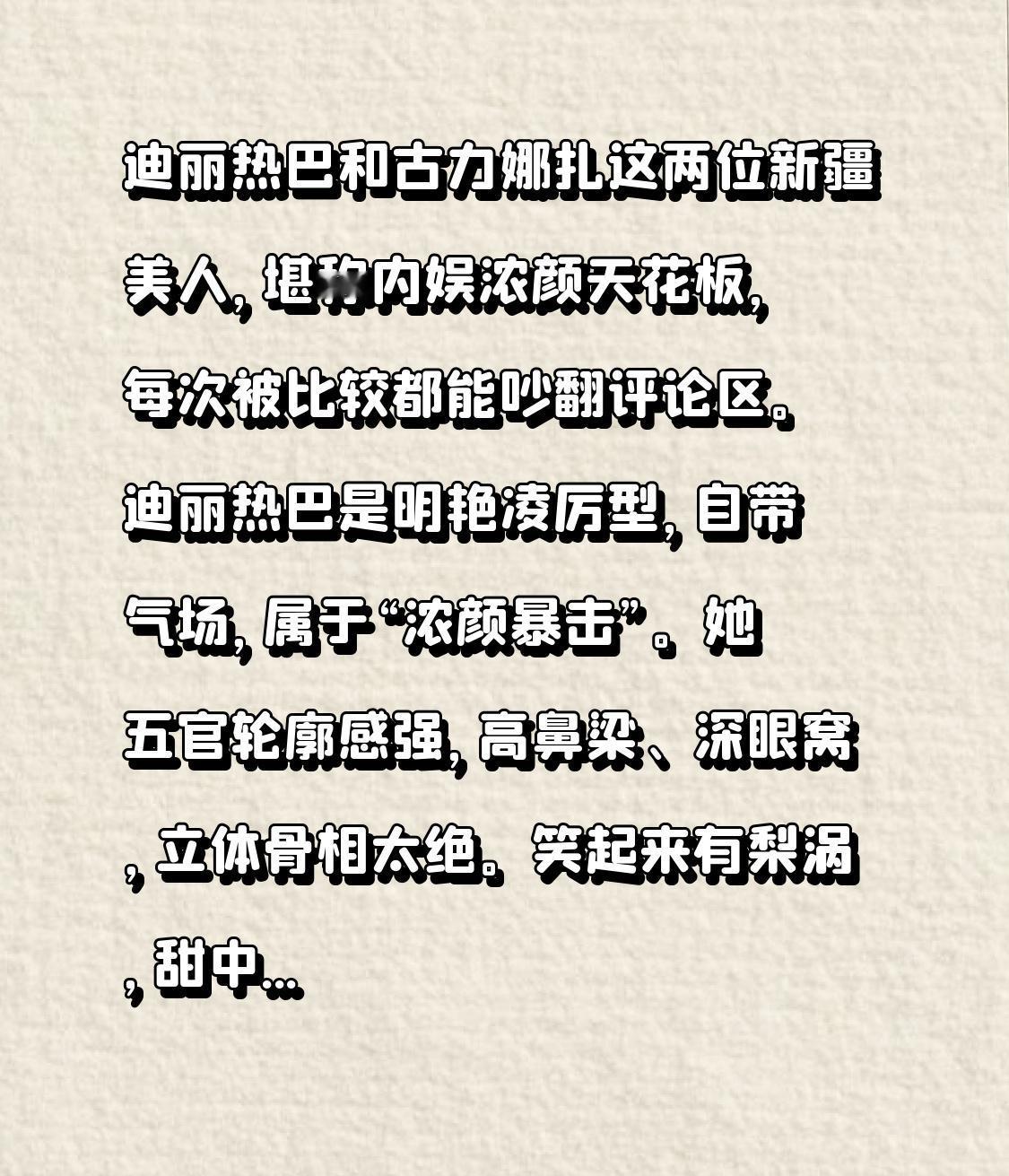 迪丽热巴和古力娜扎这两位新疆美人,堪称内娱浓颜天花板,每次被比较都能吵翻评论区。
