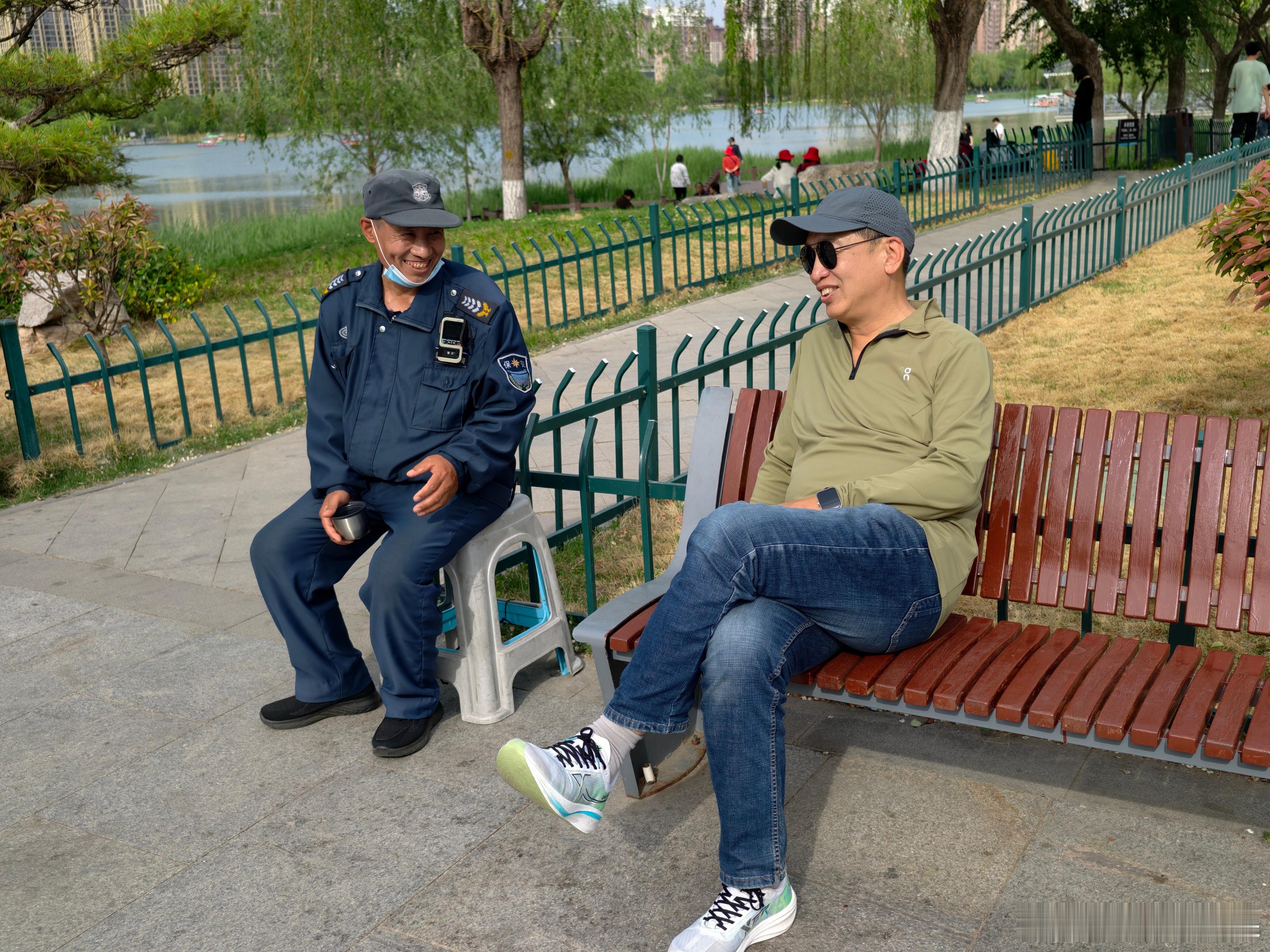 他说他以前在周村古城,他特别喜欢游客多,就像自己家里来了客人,尽管累点,但心里高兴。2️⃣ 孝妇河湿地公园的清洁工阿姨