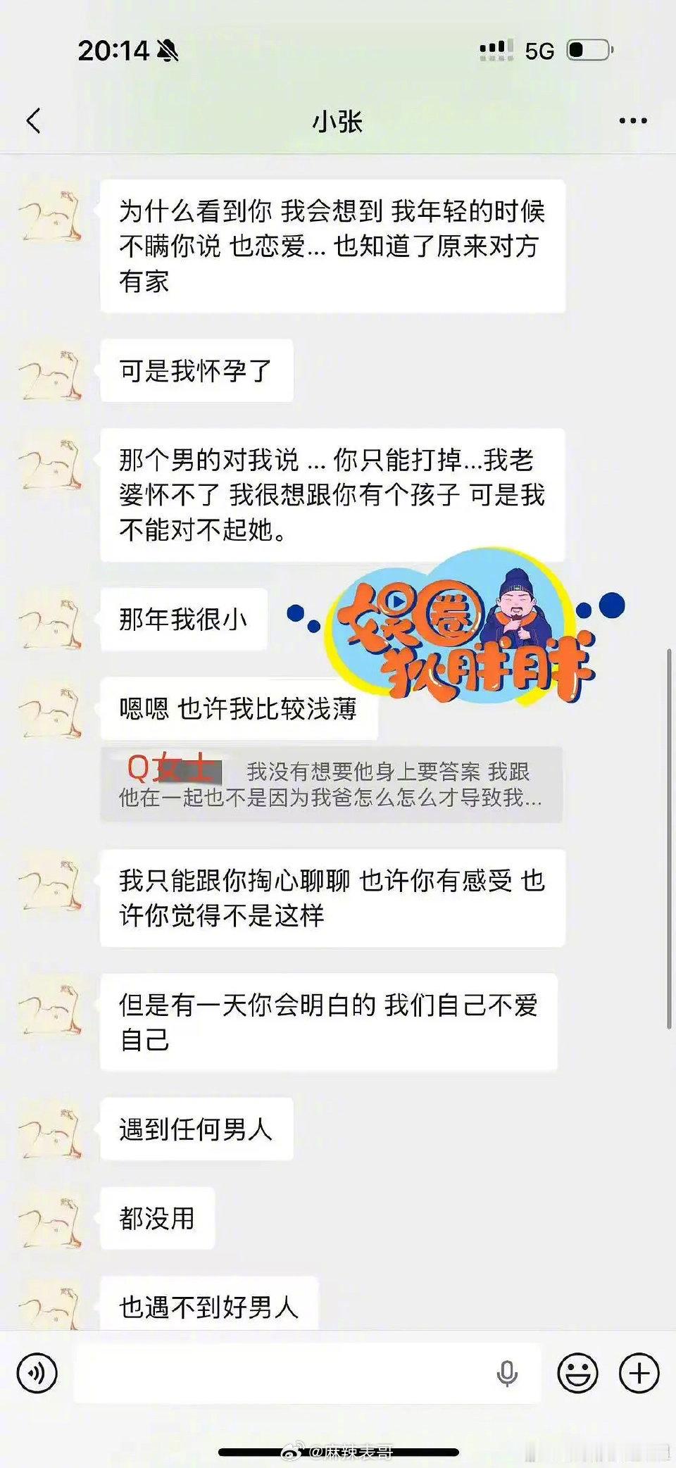 图里,张婉婷透露出了,自己做小三的时候,怀孕了,那男生和自己说原配怀孕困难,但不能让张婉婷生,会觉得对不起原配(图3
