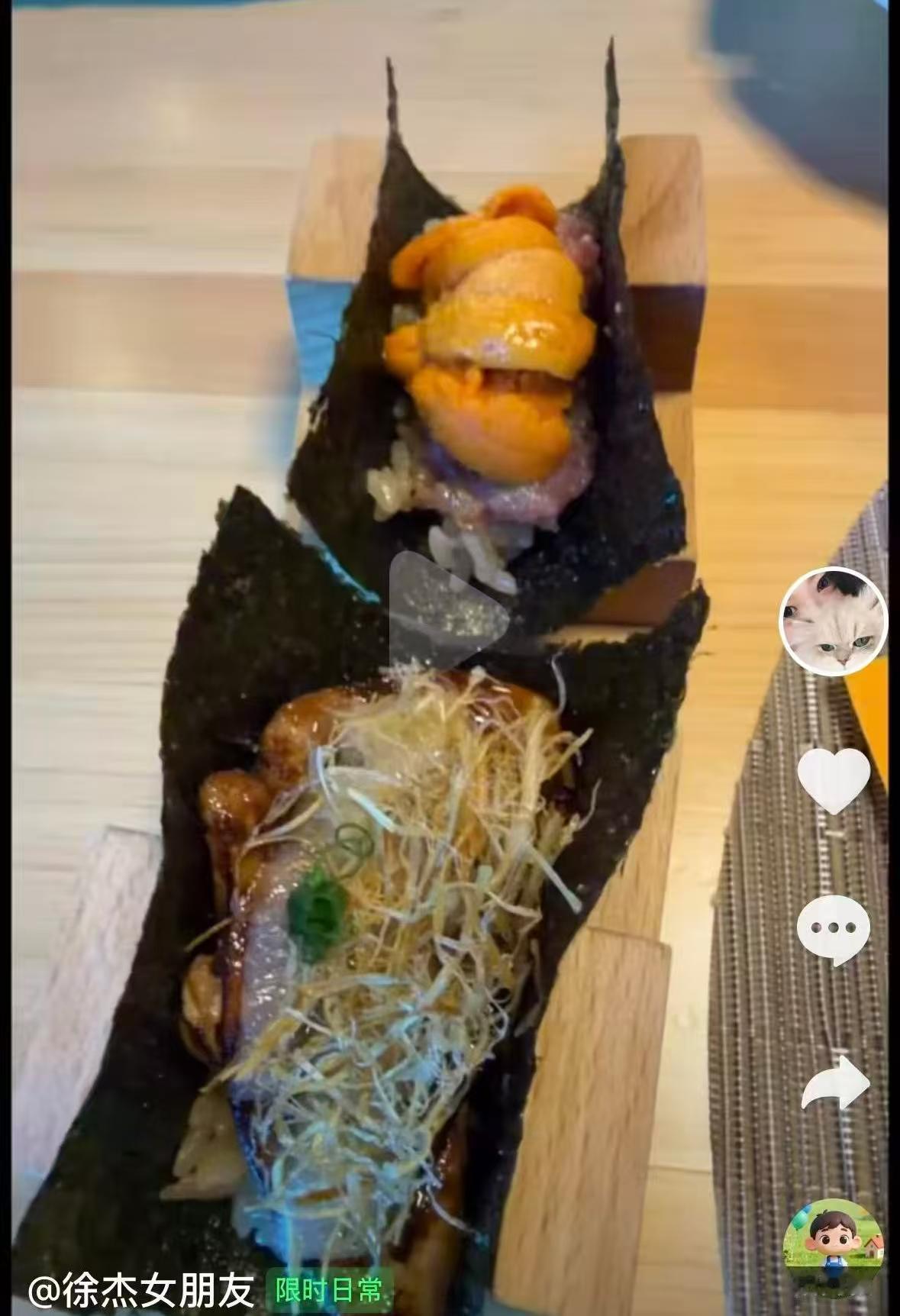 晚上女友晒出去日本料理店吃饭的照片,这种生食为主的餐厅一般人吃了都会不适应,如果徐杰也能吃大概是完全康复了。