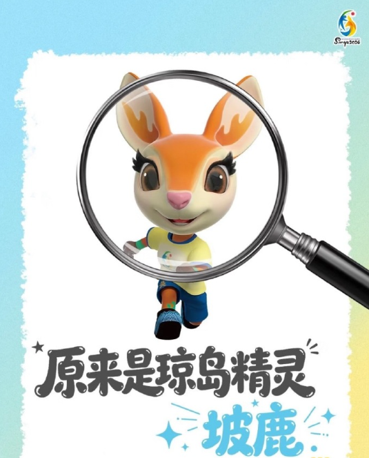 先说原型——海南特有的坡鹿,不是烂大街的熊猫猴子,地域辨识度直接拉满。鹿的形体本身就带着灵巧和舒展的气质,跟沙滩运动的调性天然契合。