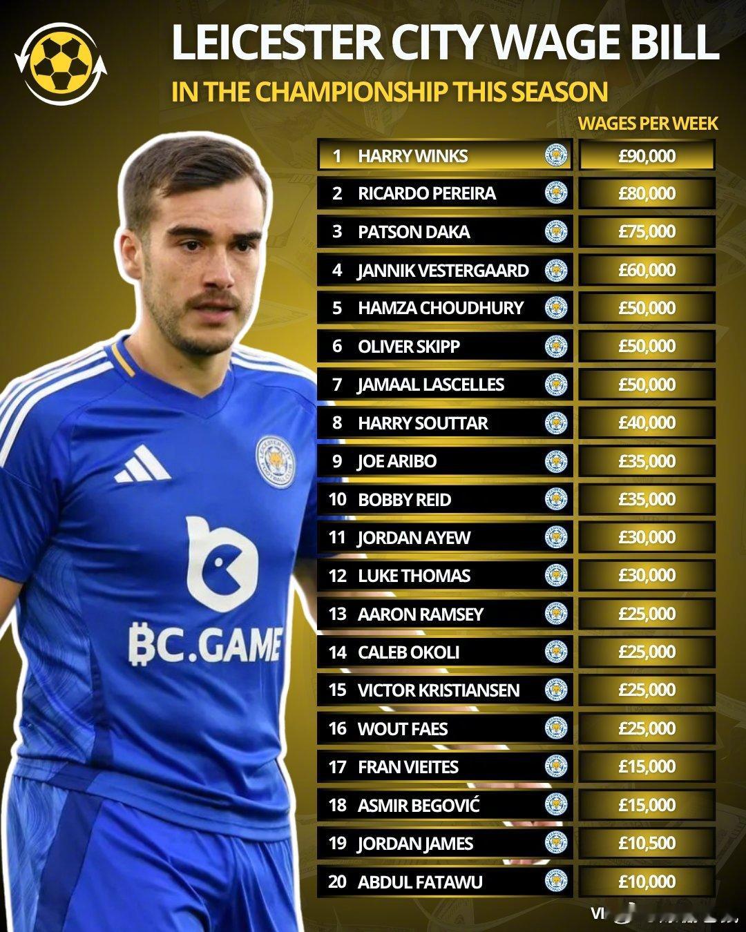 【高薪包袱】莱斯特城连续两年降级,下赛季征战第三级别联赛英甲,收入大幅下降,球队还必须甩掉大量高薪的球员,比如周薪高达9万的温克斯,8万的里卡多-佩雷拉,7.5万的达卡,6万的维斯特高,5万的乔杜里、斯基普、拉塞尔斯等,而队内身价最高的法塔乌只拿着1万的周薪,16岁新星蒙加则是备受关注。英超