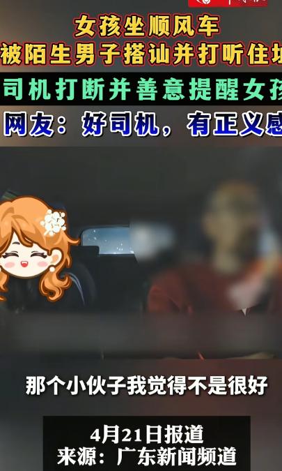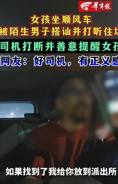 浙江,一年轻女孩搭顺风车时,被同车30岁男子盯上打探住址、加微信等,司机察觉不对劲主动插话,女孩全程被动。男子下车后,司机提醒女孩删掉男子微信,话音未落,男子就打来了电话,令女孩脊背发凉。网友大赞司机:“人间清醒,见义勇为!”