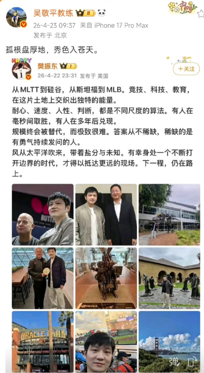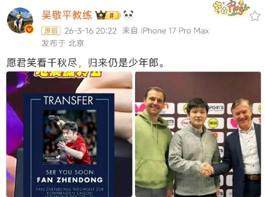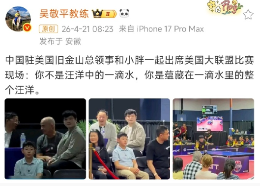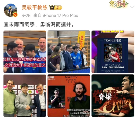 近两年,吴敬平教练以笔墨诗文,细细记录樊振东一路拼搏轨迹。懂他赛场风骨,知他内心