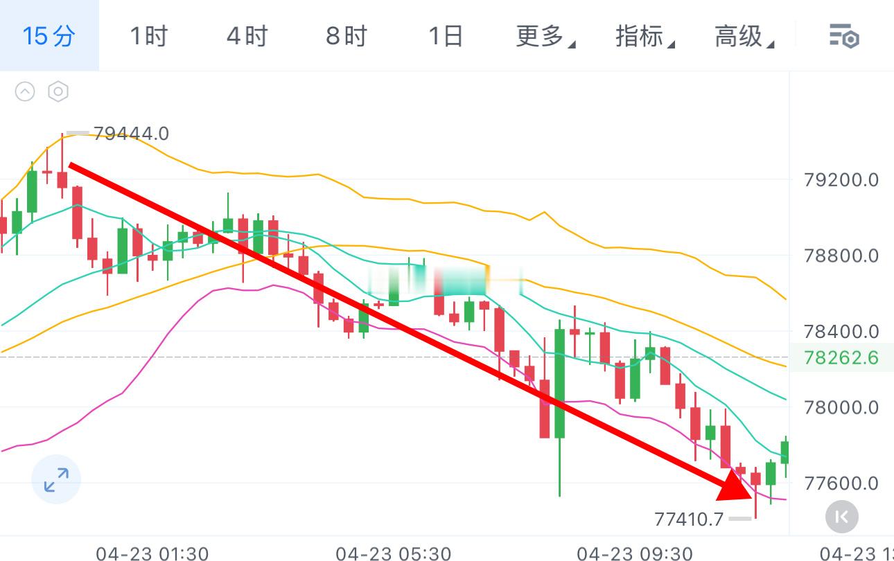 从昨晚就一直提醒逢高做空,谨慎追多,从前两天73700/74709/75500追多看到78000,高位转空。