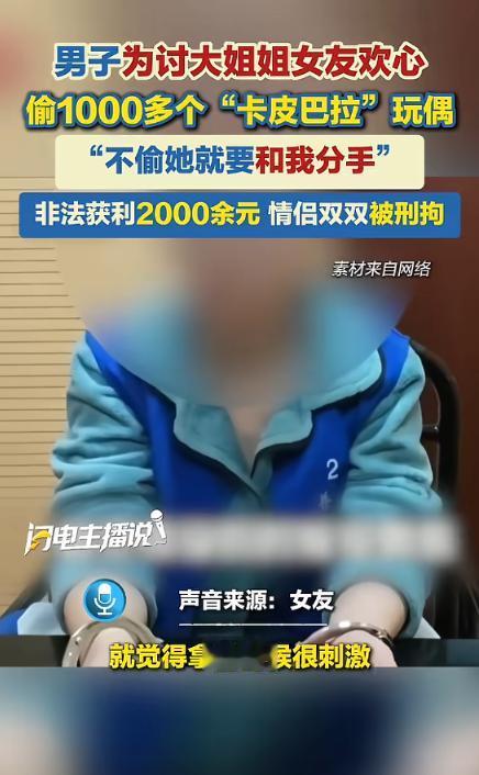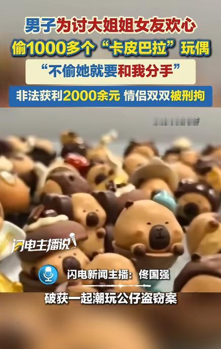 (信息来源:闪电新闻《男子为讨大姐姐女友欢心,偷1000多个“卡皮巴拉”玩偶!不偷她就要和我分手!情侣双双被刑拘。》)