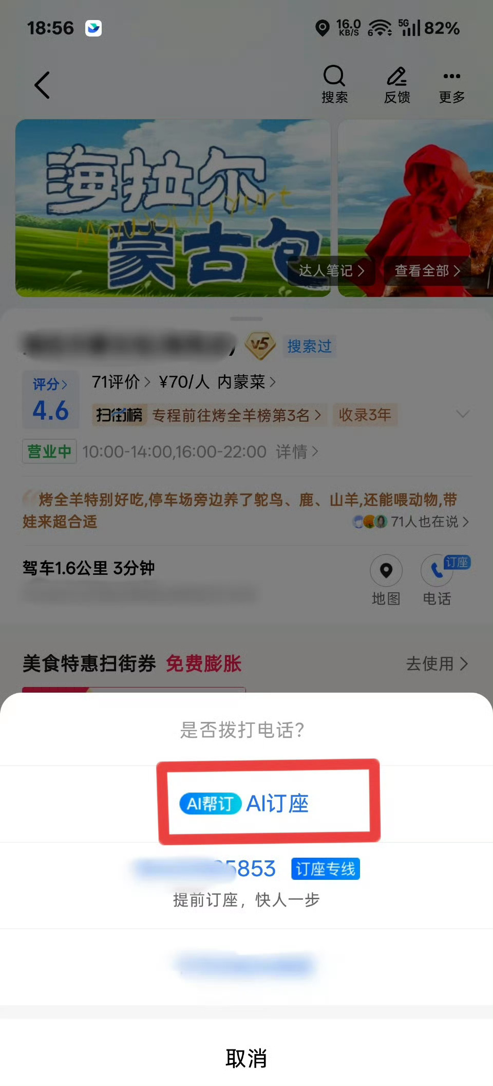刚刚用高德查饭店电话想预定座位,发现它有个 AI 订座功能
