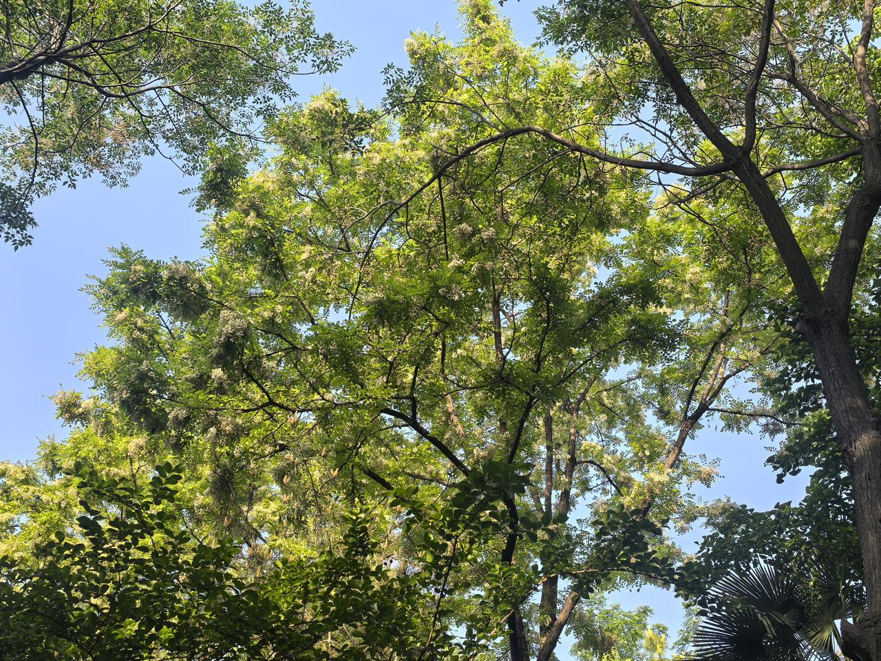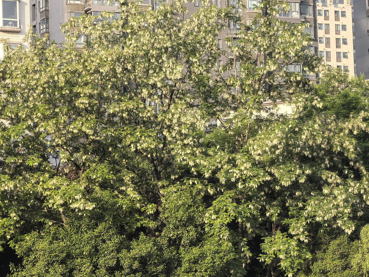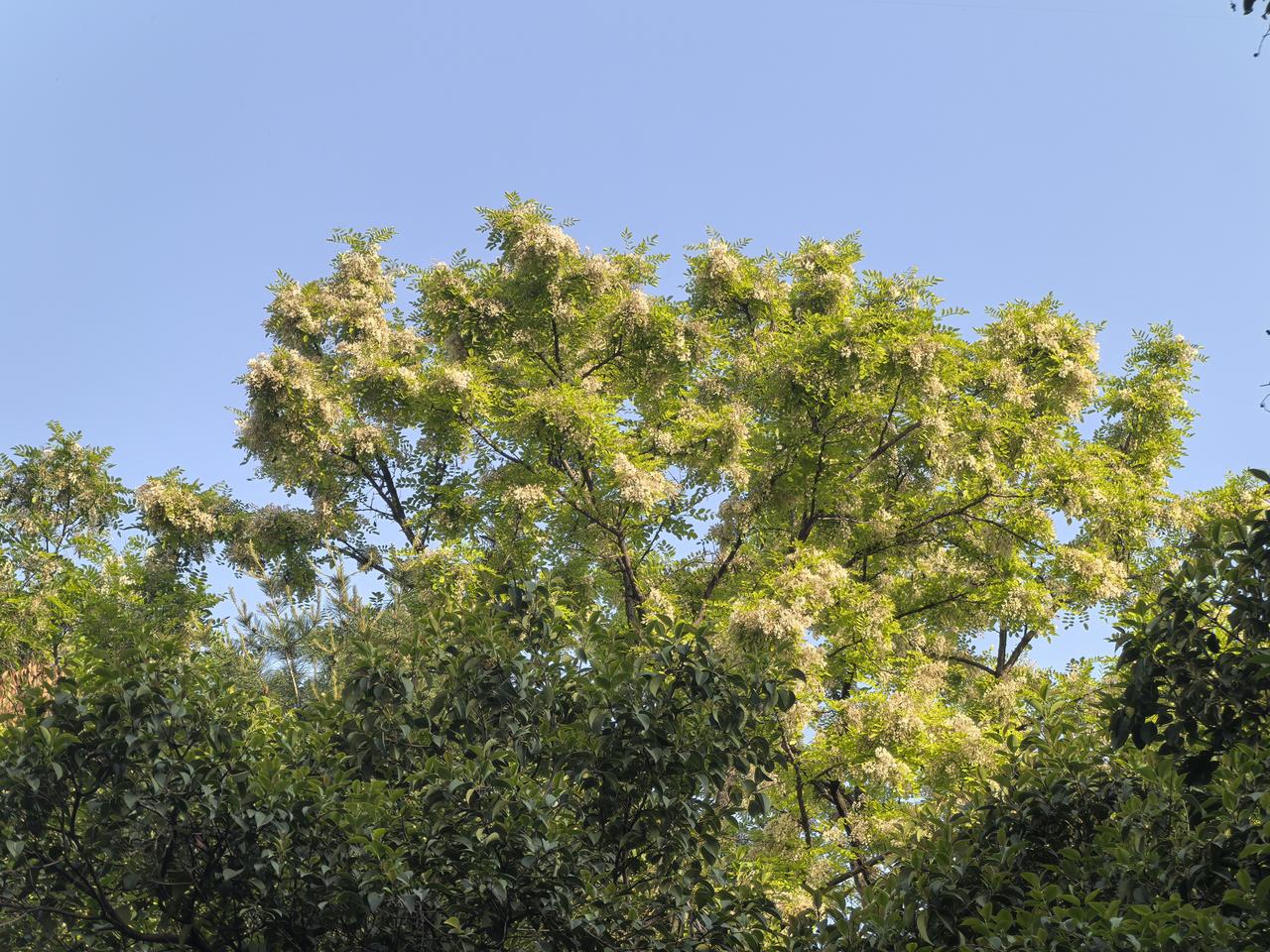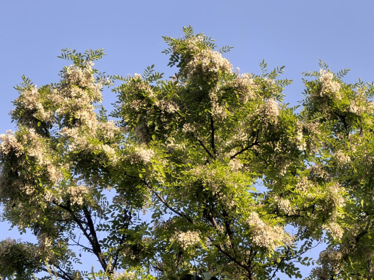 槐花盛开的景象还是很美的,像碎玉、繁星缀满枝头。林间百鸟高歌,蜜蜂、彩蝶来回穿梭,田间农人劳作,构成一幅春日优美画卷。槐花香气淡雅,似悠扬小曲拨动心弦。在这样的场面里,和老娘一起摘槐花,格外温馨。现在想起来都心潮难平。