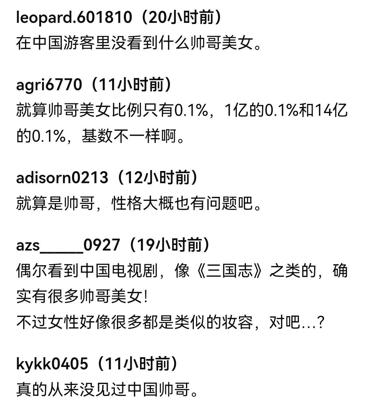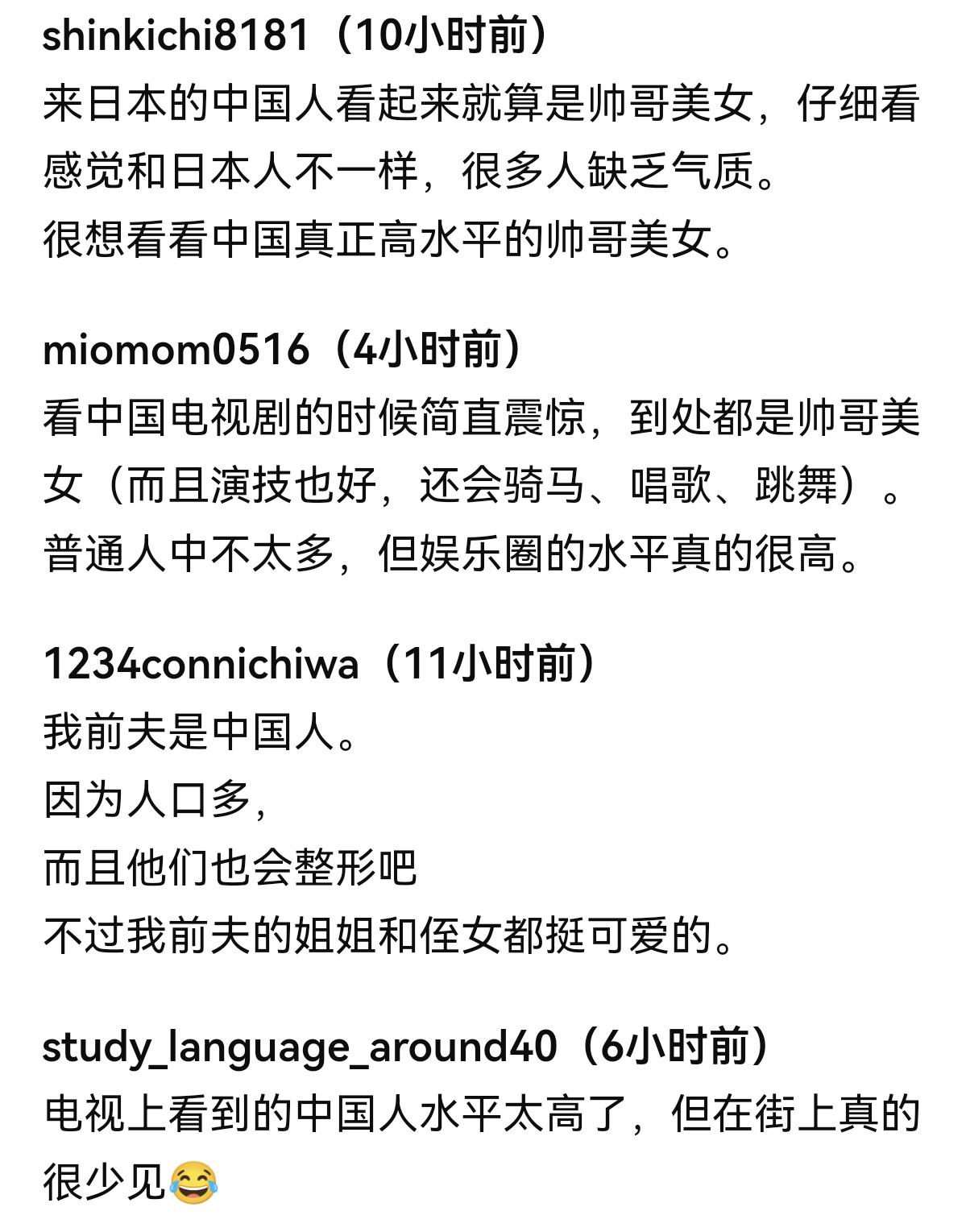 日本人讨论中国的帅哥美女,怎么感觉酸的一批啊——