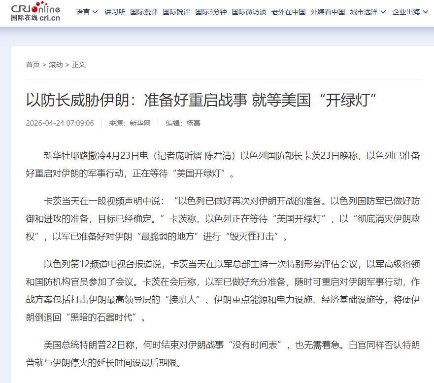 以色列电视台也报道了,卡茨当天在军队总部开了形势会,高级将领和官员都来了,这说明不是他个人嘴硬,是以色列官方的意思。