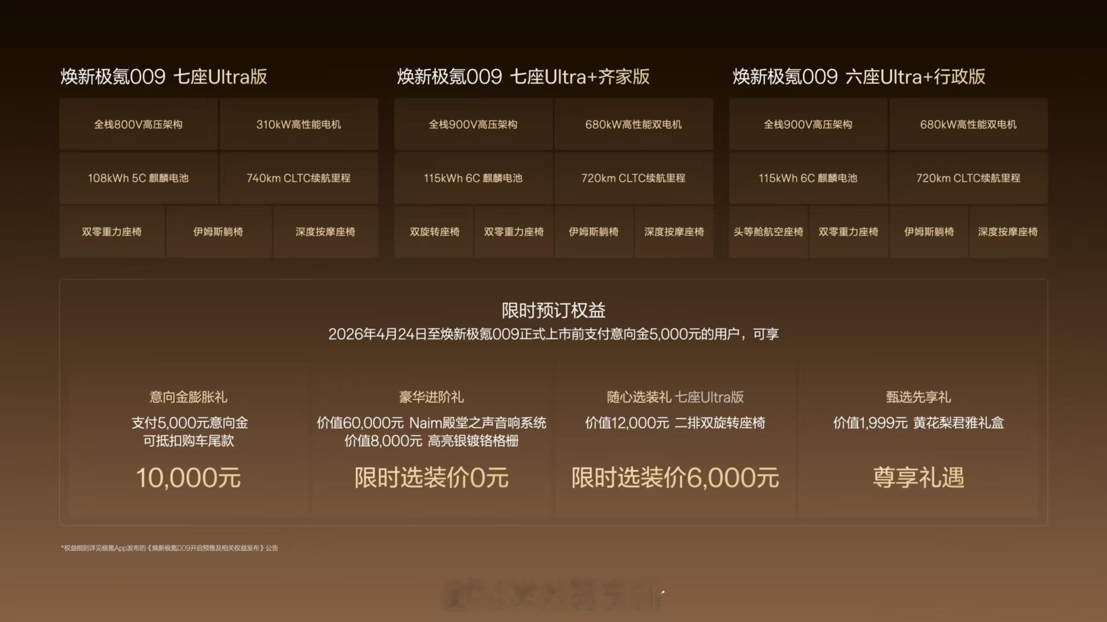 车展必看旗舰!焕新极氪009开启预售,专为大家庭打造的七座齐家版来了。既有顶级商务MPV的豪华气场,又兼顾多人口家庭的舒适出行需求。900V平台、高端底盘、全域安全全面标配,兼顾品质、舒适与安全感。一车适配全场景,让商务体面与家庭温情,无需取舍。极氪009推出七座齐家版极氪009齐家版源自传统文化