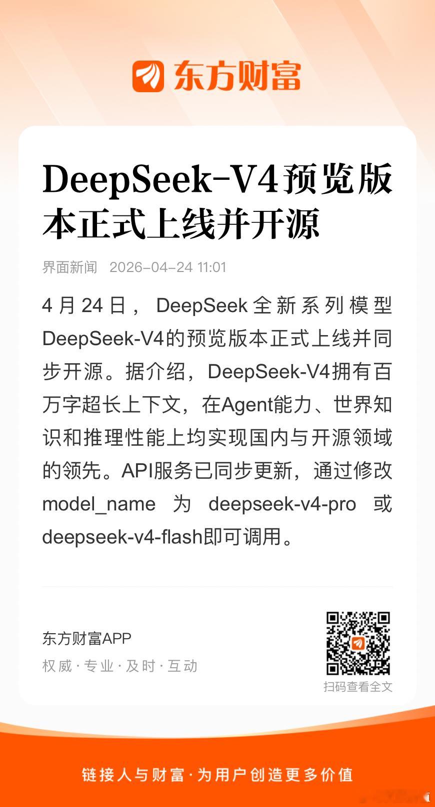 DeepSeek-V4一发布,智谱和Minimax的股价应声下跌,国产芯片中芯华虹等直线拉升,形成了鲜明的对比。对于那些依靠开源刷榜的大模型来说,实力派的一个技术升级迭代就会让它们瞬间无声哑火。当然,如果ds能够全国产化对于整个中国AI产业的生态来说是件大好的事情,因为又多了一个全国产化的大模型,这对于产业对于讯飞来说都是好事,更将会提高AI全国产化的重要性与价值。正如两三年前一直所说的那样,对于中国科技企业来说,唯有自主研发、自主可控才是核心,唯有构建国产化路线与生态才是未来。唯有强强联合、互利共赢、共建生态,打造出一条纯国产化的AI生态产业链才是中国AI的出路与方向。唯有举国之力大举发展科技创新,才能有希望突破卡脖子的重围,才能有希望赢得这场AI之争,才能有希望成为科技强国。在AI时代浪潮的产业化爆发与变革推动下,在中国科技产业进入崛起腾飞的黄金发展大时代推动下,以华为、大疆、讯飞、中芯等等为代表的中国核心技术自主可控的那些高科技企业,正在迎来前所未有的历史性巨大机遇…💪🍎🌹