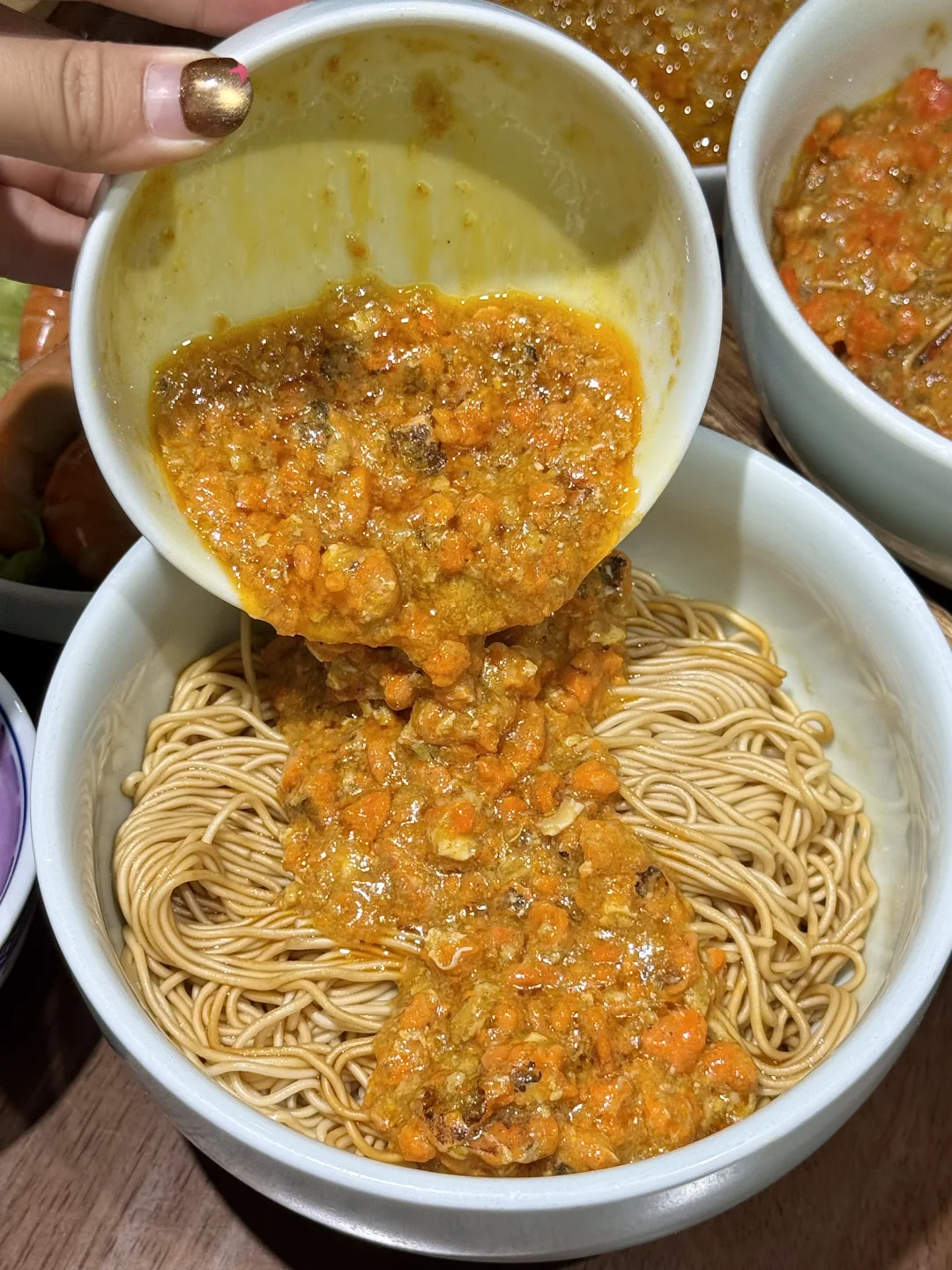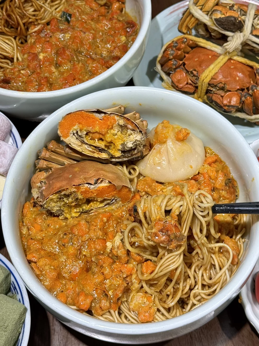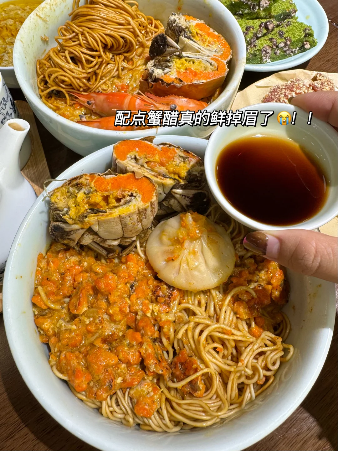 蟹黄包一口爆汁!蟹面蟹饭料好足!他家用的是还是拌过的葱油面!又香又入味拌上蟹黄金和蟹醋 简直鲜掉眉了😭
