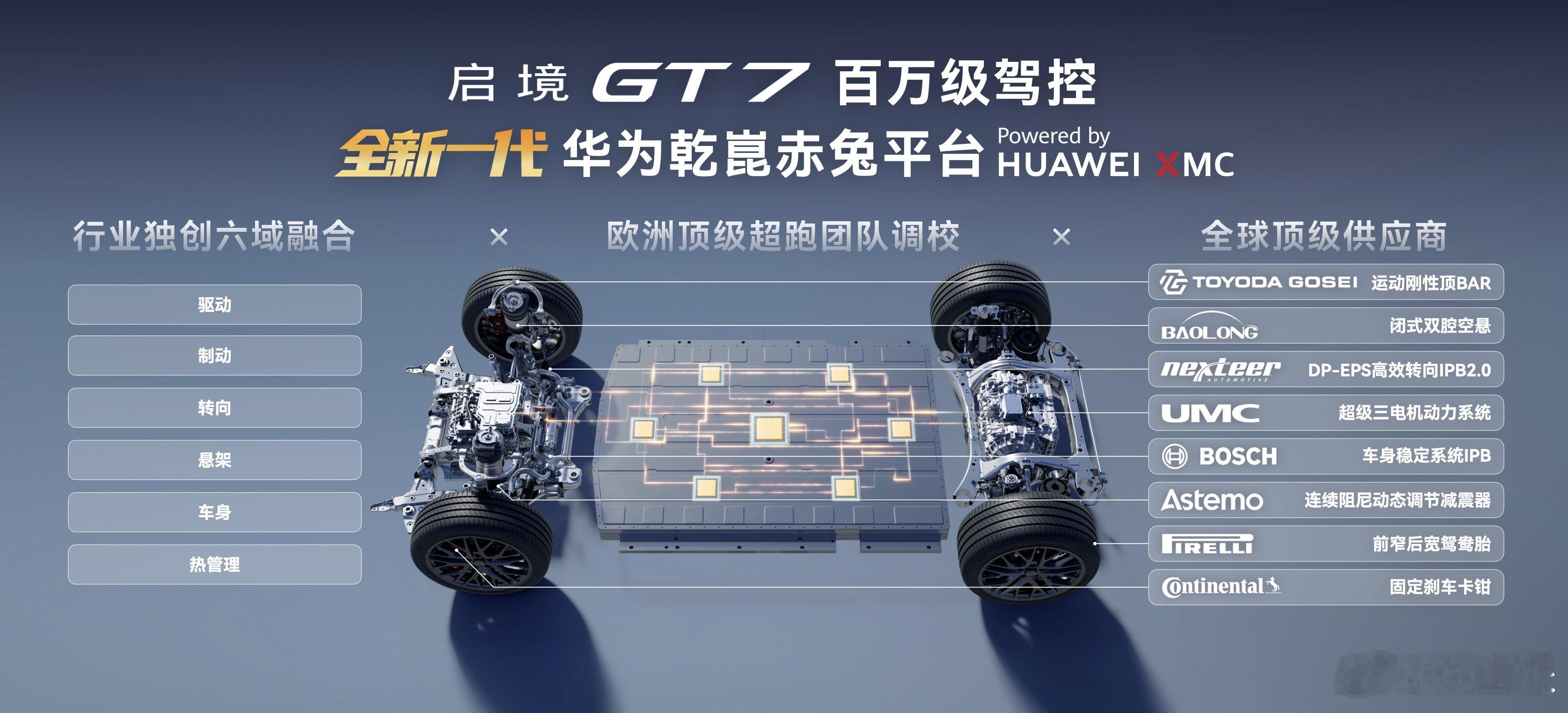 启境GT7亮相北京国际车展这次启境GT7搭载了很多新技术其中首发搭载的华为乾崑赤兔平台是我印象最深刻的华为乾崑赤兔平台依托行业独创六域融合架构,联和欧洲超跑团队调校与全球顶级供应商配置,实现动力、制动、转向、悬架、车身、热管理系统的一体化协同控制,将底盘操控的极致稳定性转化为高阶智驾场景下的安全冗余,在湿滑路面、高速爆胎、连续避障等极端工况中,始终保持精准可控的车辆响应,构建起从日常操控到突发状况的全方位安全防线,实现驾控性能与智驾安全的双重突破。华为全新一代技术上车启境GT7华为广汽打造可进化的出行智能体