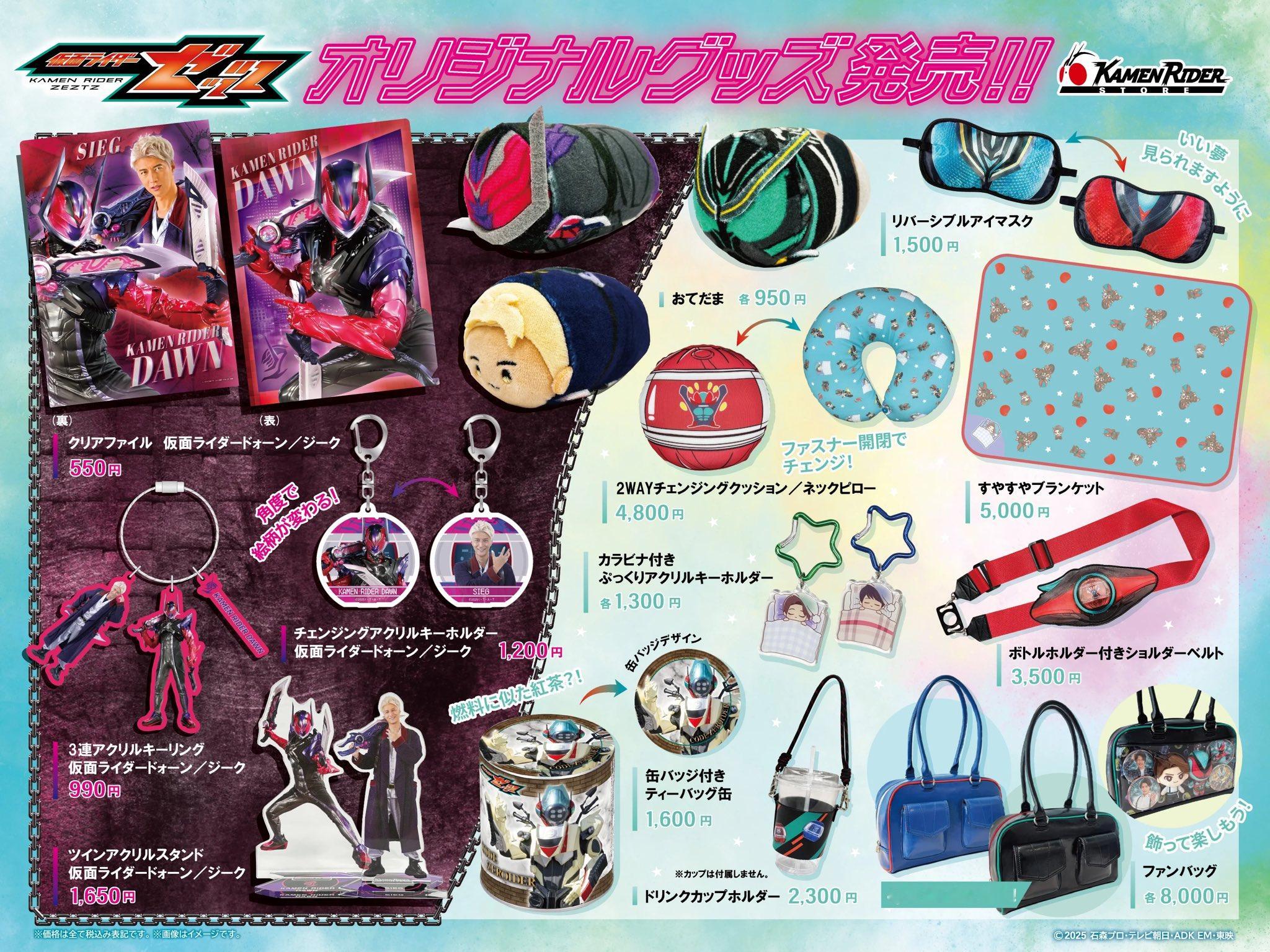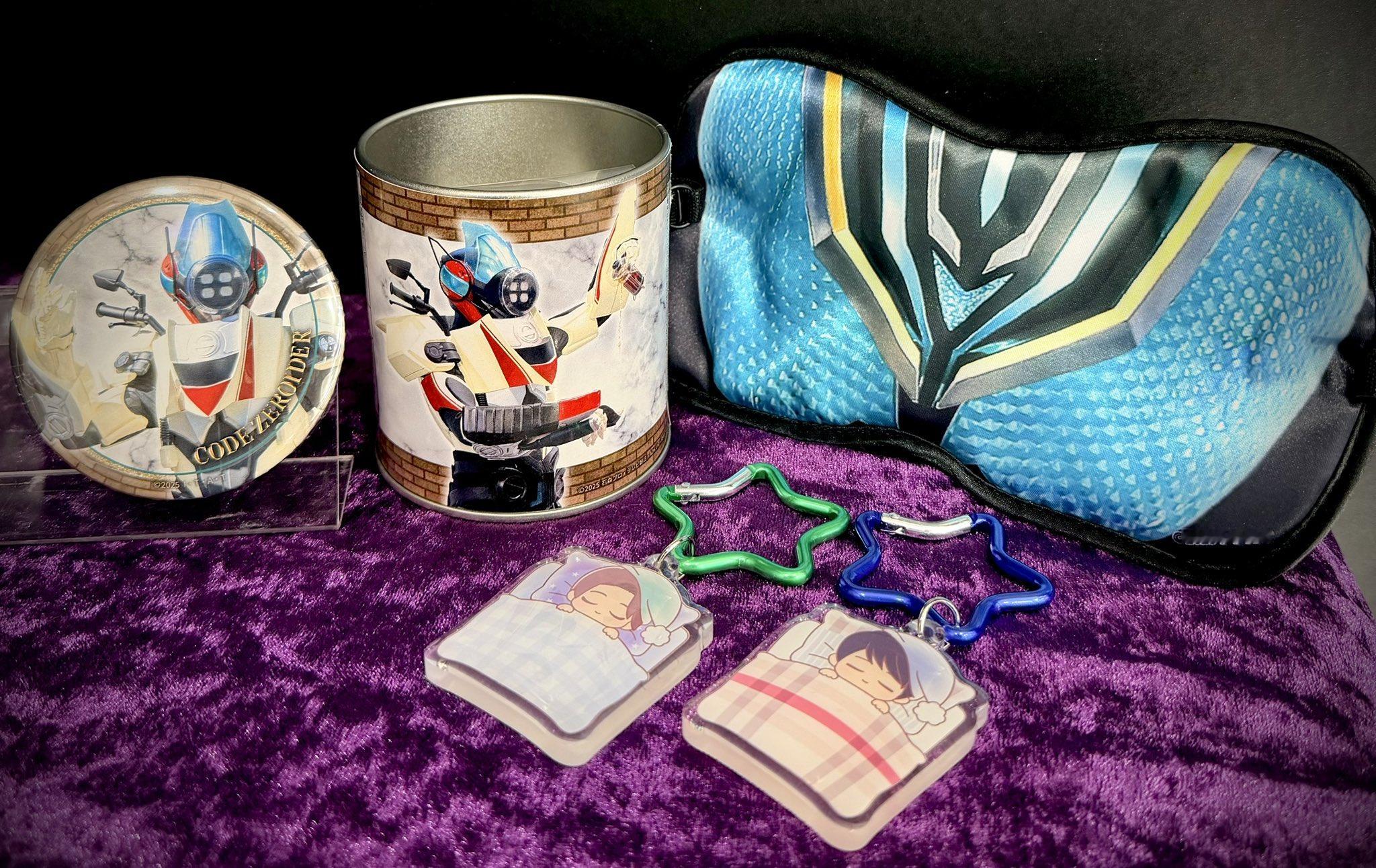 明日4/24(金)から 仮面ライダーゼッツ 新商品が一挙登場❗️💤仮面ライダードォーン / ジーク のツインアクリルスタンドやおてだまのほか、いい夢が見られそう😴なおやすみグッズもラインナップ!🌃また燃料に似た紅茶が楽しめるティーバッグ缶にはコードゼロイダーの缶バッジもセットになっています☕️✨