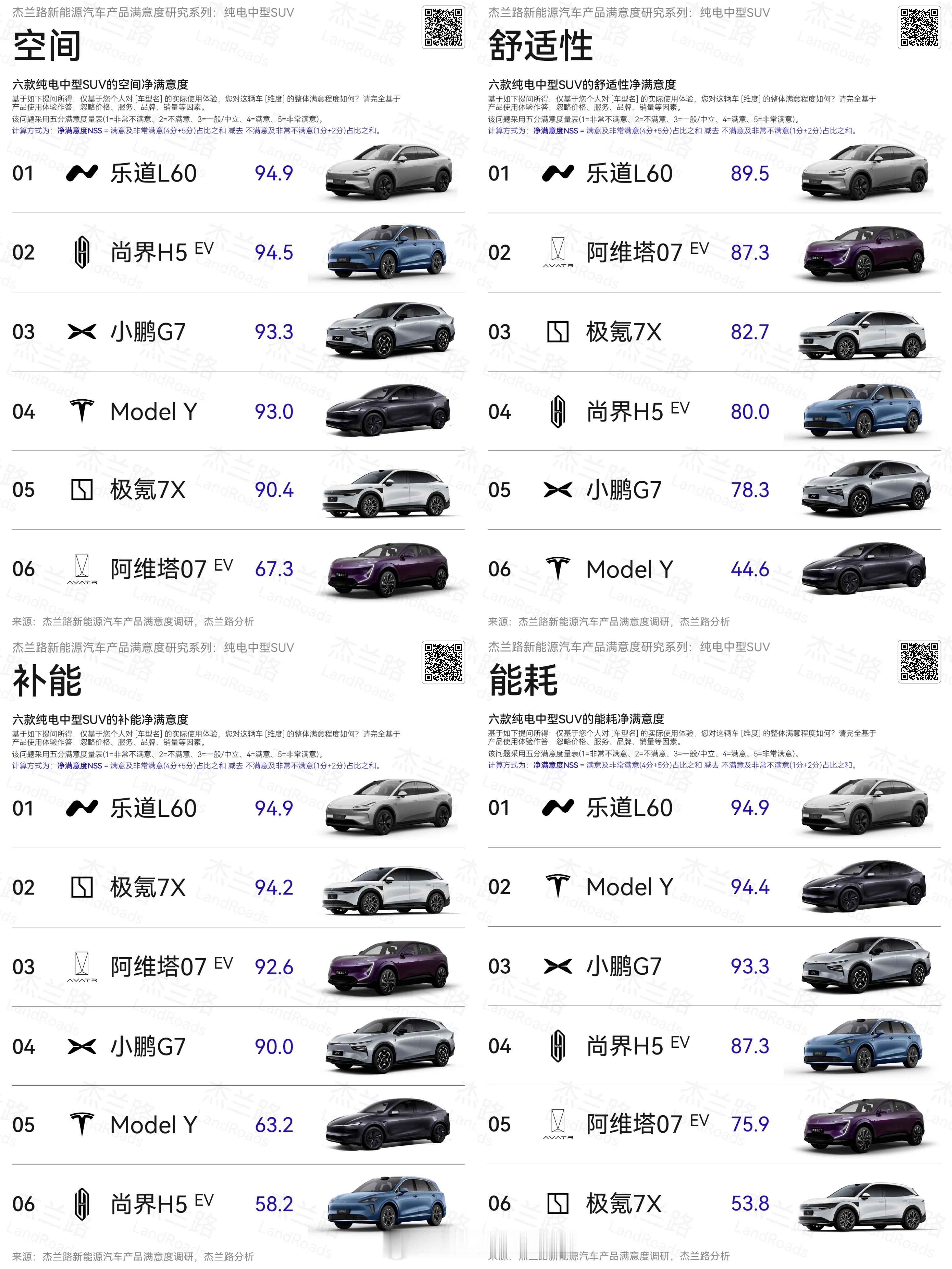 刚刷到杰兰路的纯电中型SUV满意度报告,乐道L60这次是真的很拿得出手。不光整体