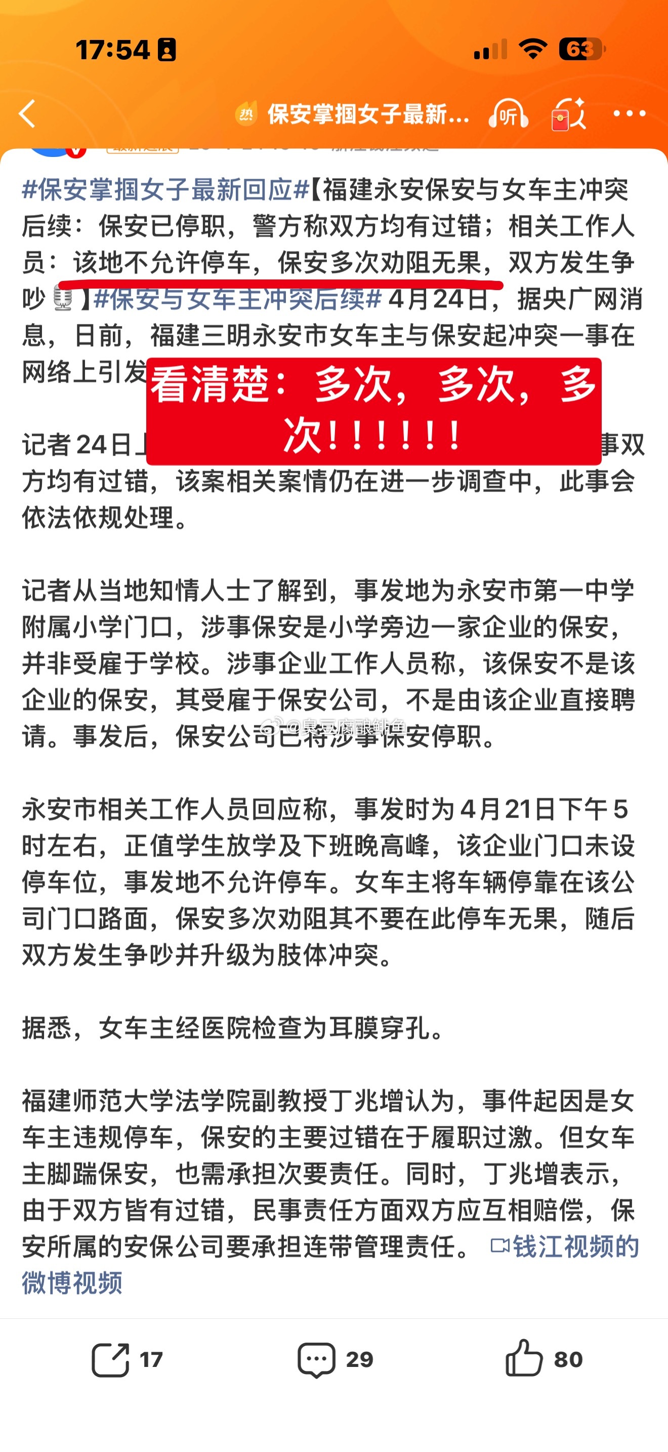 大佬,你别光说我幼稚,请问,保安应该怎么办?学校让家长不要停。公司那门口也没有停车位。保安多次劝阻不让停。她硬要停。让她停了,你今天收入没了一截(甭管多少。)如果你干这个活,每天还要扣点,你怎么办?