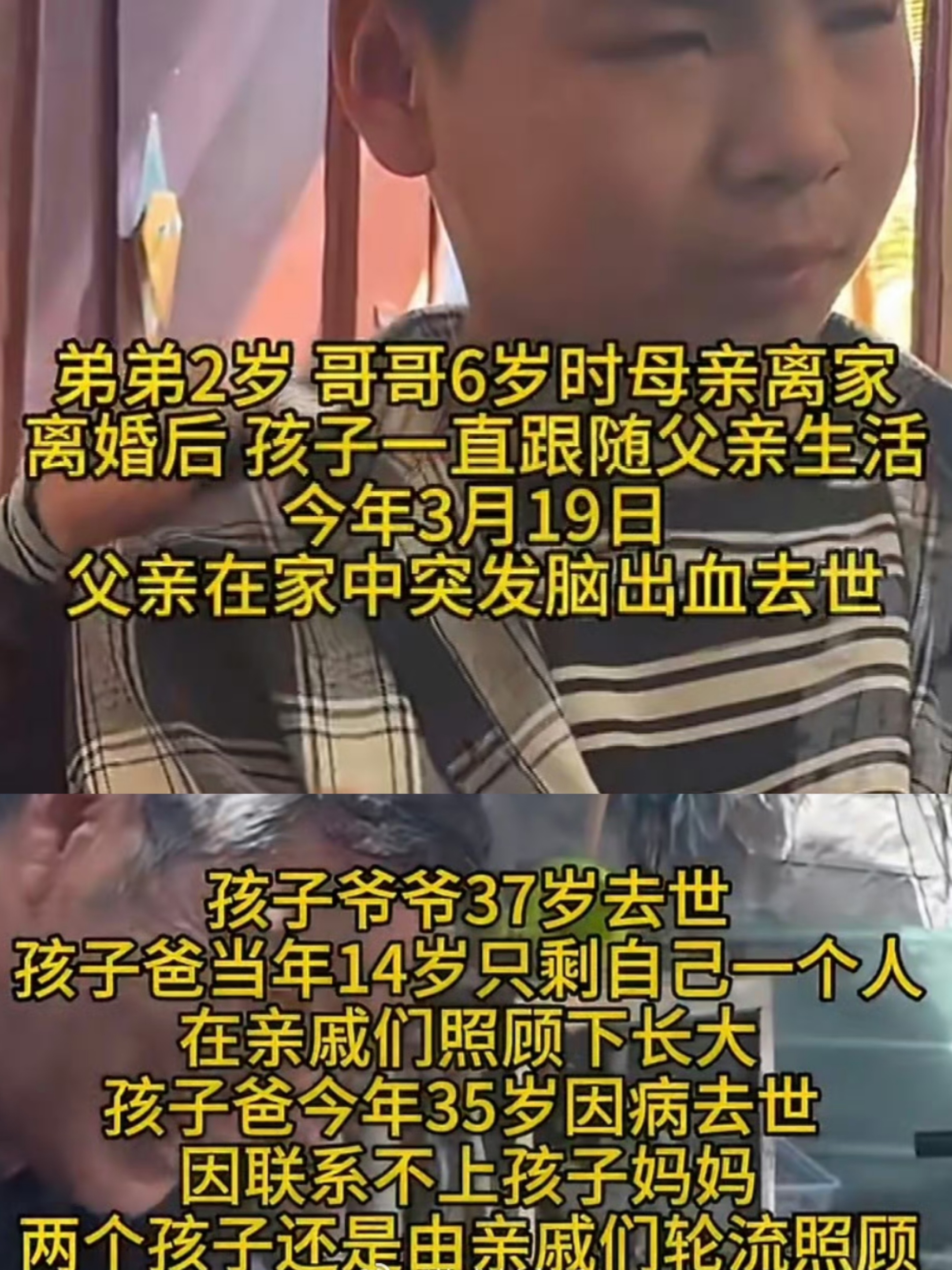 面对父亲突然离世,兄弟俩被迫一夜长大,亲戚们轮流照顾很暖心,但寄人篱下的感觉,只有经历过的才会懂,在别人家凡事都需要小心翼翼,逼自己尽快懂事,生活总有猝不及防的风雨,愿兄弟俩能被世间温柔善待。35岁单亲父亲压力大去世留下俩儿子
