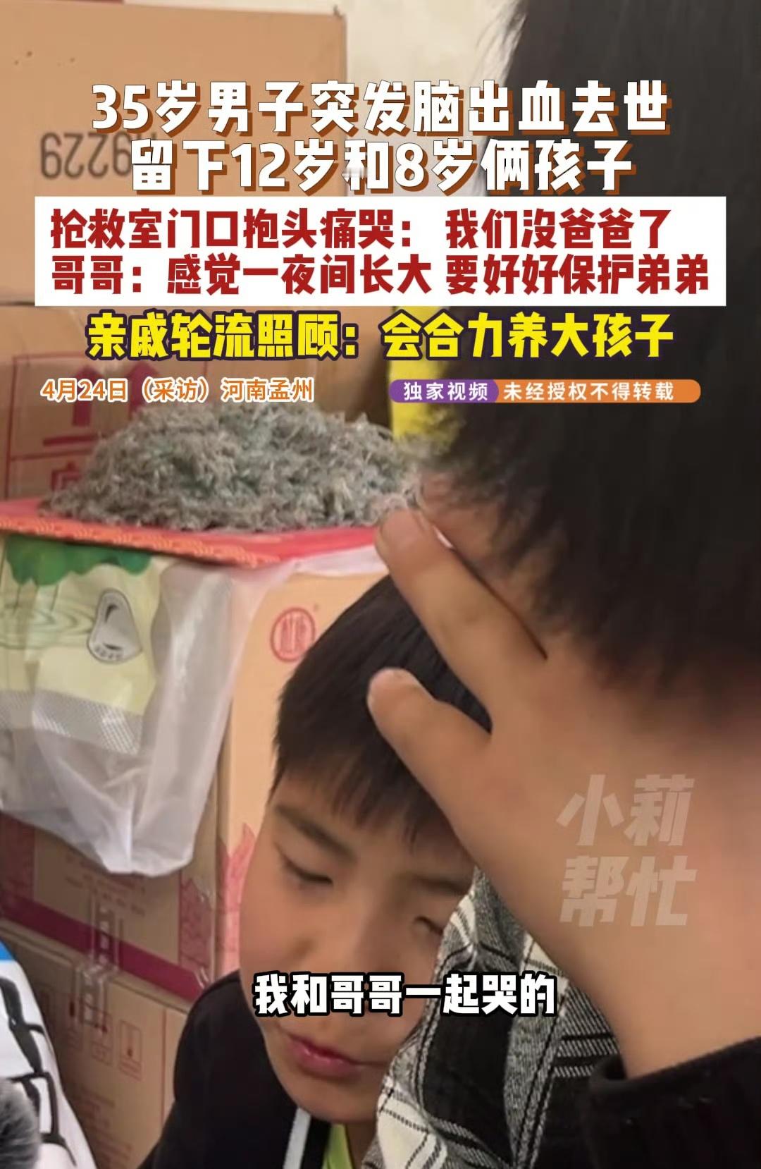 近期,河南孟州一名35岁单亲父亲,因长期生活压力突发脑出血离世。他早年离异,独自抚养12岁与8岁两个儿子,没想到走得这么突然,孩子母亲还联系不上,但亲戚们表示会轮流照顾让孩子长大。让人动容的是,这位离世的单亲父亲,同样是年少丧父,靠亲戚帮扶长大,却英年早逝,这辈子真的太苦了。35岁单亲父亲压力大去世留下俩儿子时事满谈