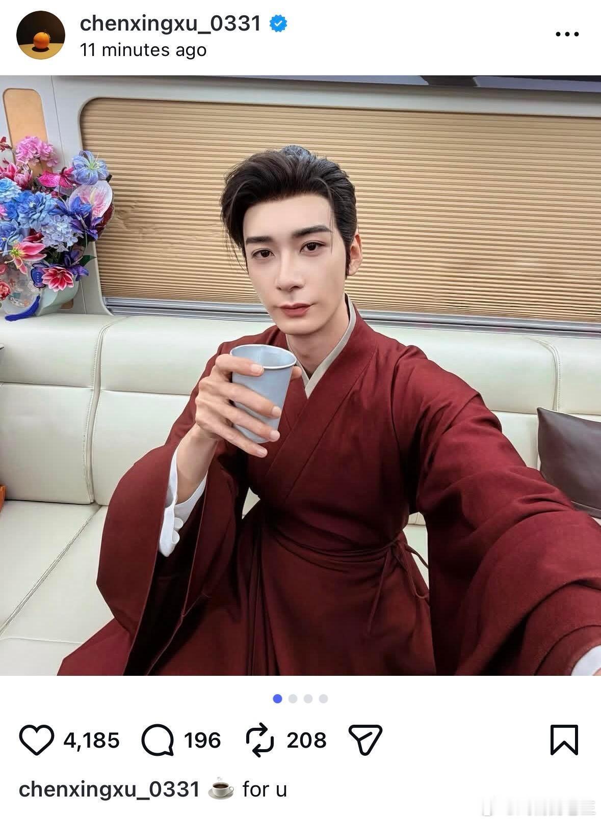 陈星旭ins更新,和大家分享咖啡正好我也在喝咖啡,四舍五入,等于是给我冲的了