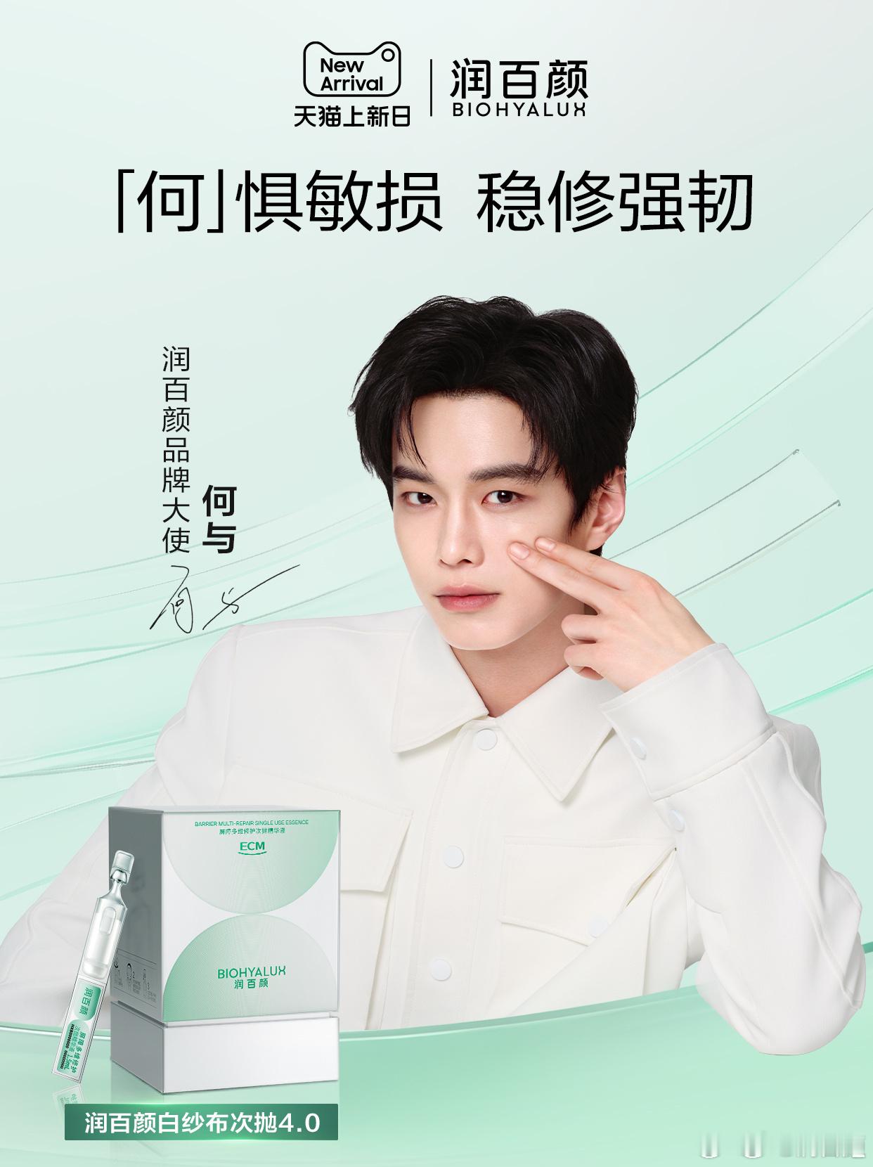 在我的印象中,何与身上最打动人的地方,是他从建筑专业跨界做演员、一步步靠自己努力成长起来的过程。何与并不是科班出身,他入行从配角演起,凭借《与凤行》《九重紫》《双轨》等多部作品的积累,他逐渐在圈内站稳了脚跟,每一步都走得踏踏实实。几年的演艺生涯,让他收获了不少粉丝,逐渐打开了知名度,这种稳扎稳打的成长路径,恰好是润百颜最为看重的。这次合作简直是✨一拍即合!