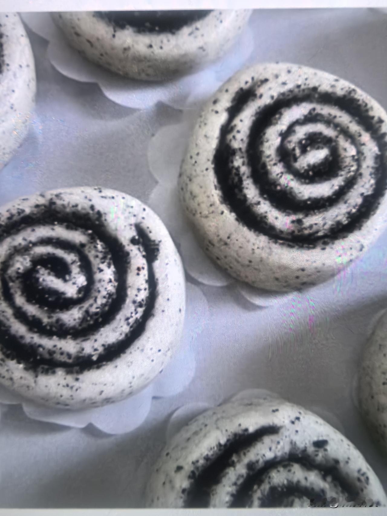 今天早餐给孩子们做的无油黑芝麻馒头卷,满满的芝麻香