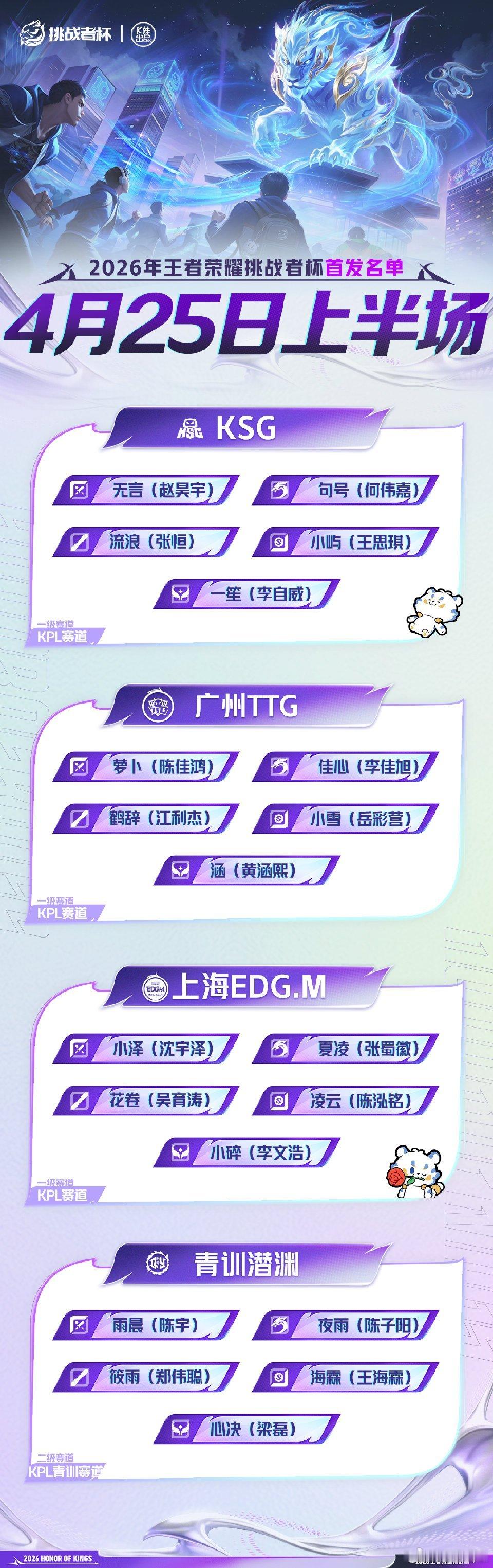 2026王者荣耀挑战者杯|首发名单