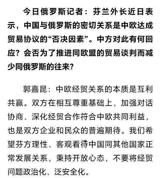 以前是波罗的海三国说这句话,现在又变成了芬兰外长说这句话。实际上都是一种外交的讹诈,根本就不值一提。