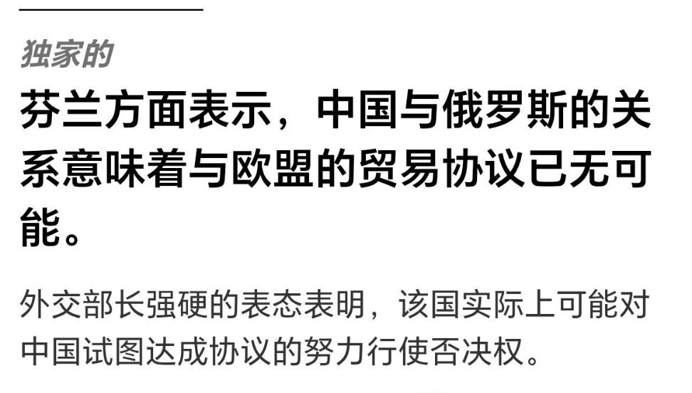 芬兰外长埃琳娜声称中俄密切关系,将阻碍欧盟与中国达成任何贸易协议。