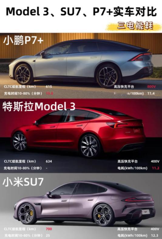 总结一下!看重空间实用选小鹏P7+,追求长续航选小米SU7,偏爱低电耗、简洁驾驶选Model 3,三款热门纯电轿跑各有侧重,按需选择,总有一款戳中你~【来自懂车帝车友圈】