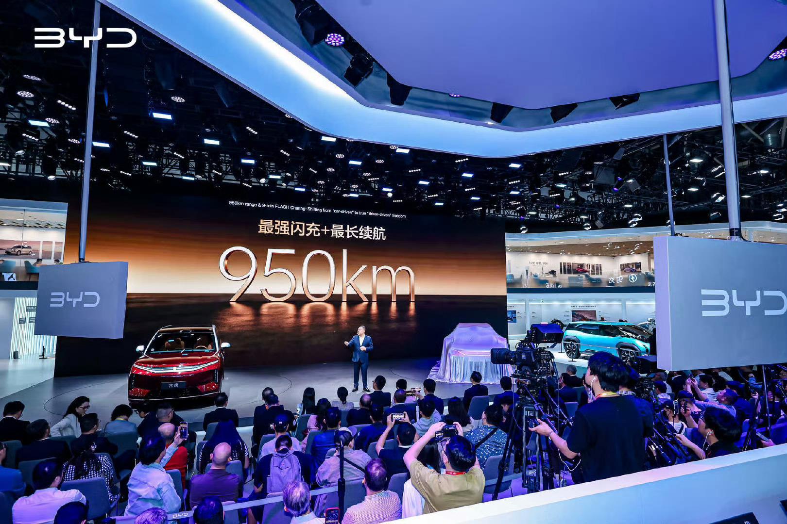 比亚迪大唐亮相北京车展,这外观看着就很大气,内饰也精致不少,还有闪充、后轮转向、天神之眼5.0……EV续航可达950公里,预售起步25万。比亚迪