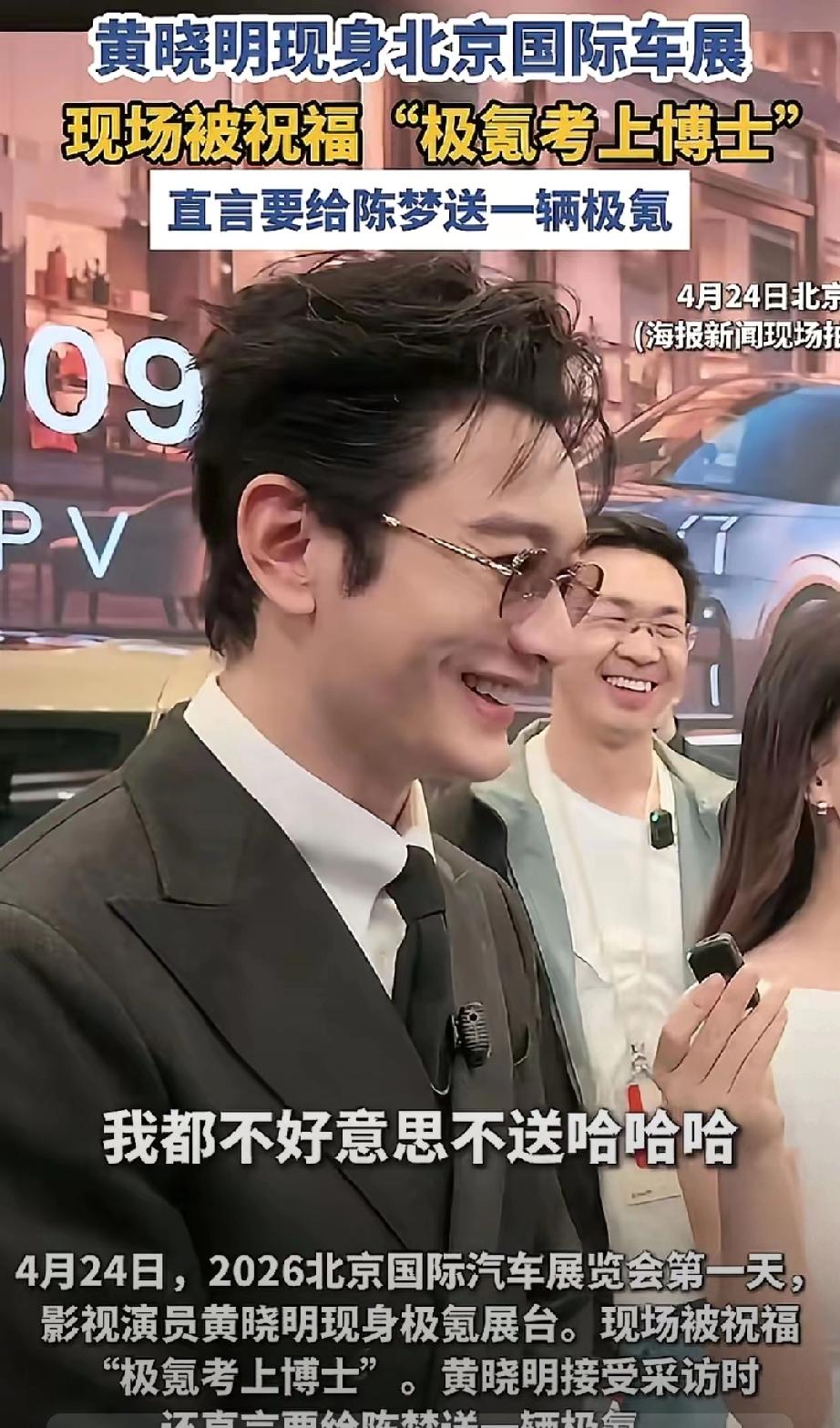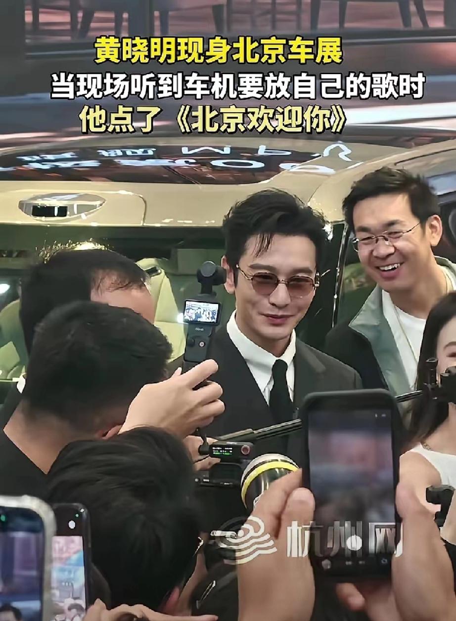 黄晓明现身极氪展台,以009车主身份助阵。现场工作人员当场点名播放他的歌曲,晓明哥瞬间尴尬摆手拒绝,全程苦笑陪笑,画面爆笑出圈。