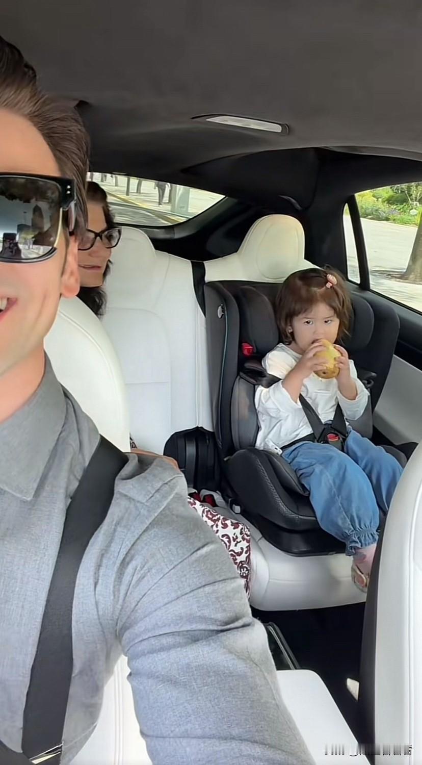 阿迪接到女儿凯莉了,刮了胡子戴着墨镜开着特斯拉,带着妈妈和小凯莉又可以出去玩了。