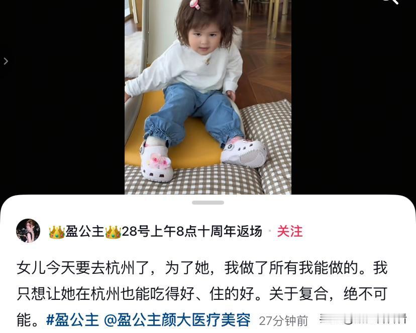 在此盈公主也发了视频来澄清,她做的一切都是为了女儿,怕女儿受苦,为了让女儿住的好吃的好,她做了她所能做的,至于复合绝不可能。