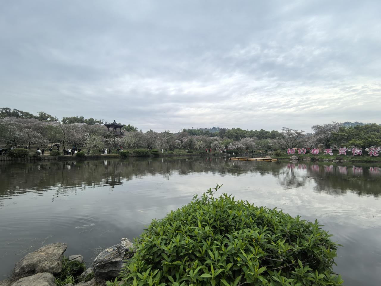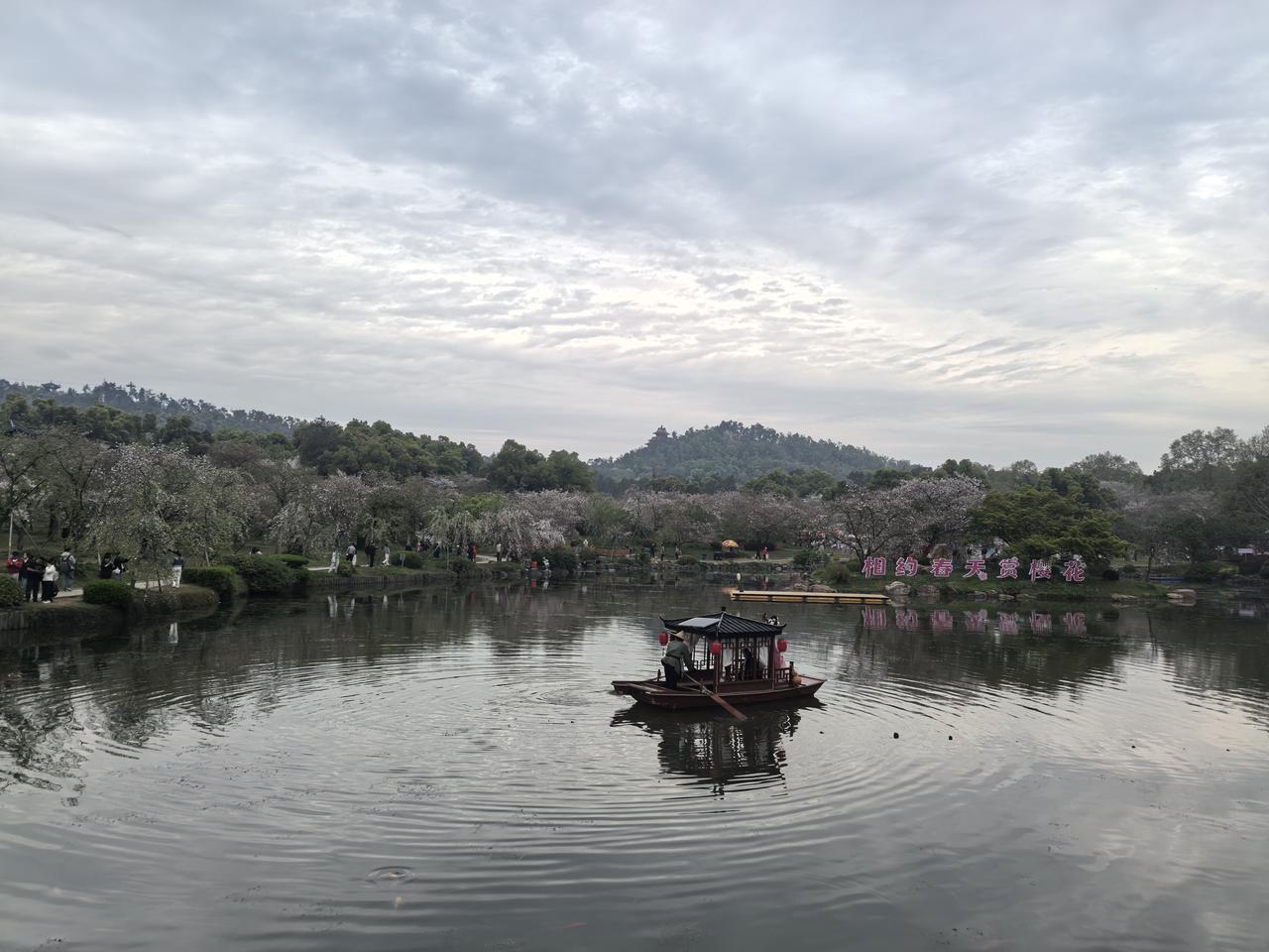 今年4月上中旬我又去了武汉东湖,同样在风景区住了半个月。东湖的春天生机勃勃,湖岸的樱花烂漫,落英缤纷。磨山的景色更是美不胜收,站在山上俯瞰东湖,湖光山色尽收眼底。