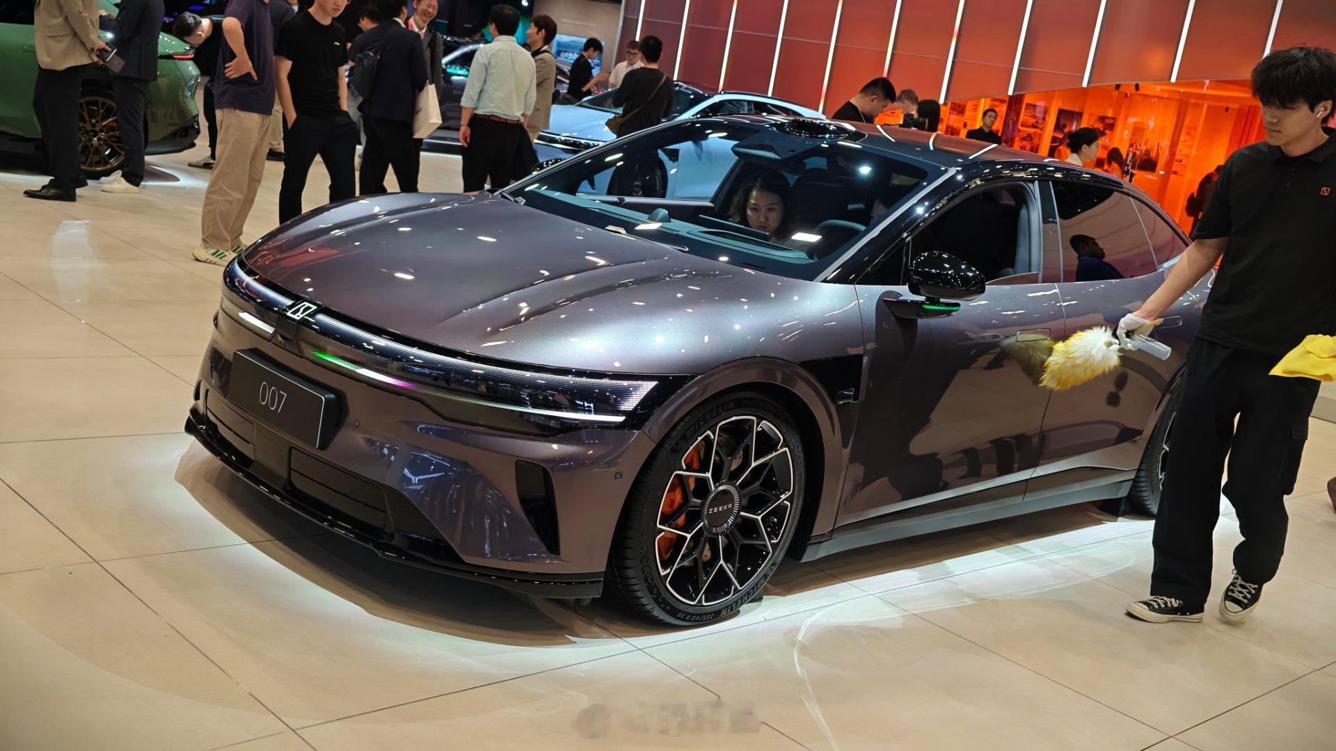 打卡一下极氪展台,有两台焕新009,但是一台挤满了人,还有一台是预约拍摄的,别人在拍。等了半天都没能挤上去我发现极氪展台外国人和中国人的数量大概是1:1