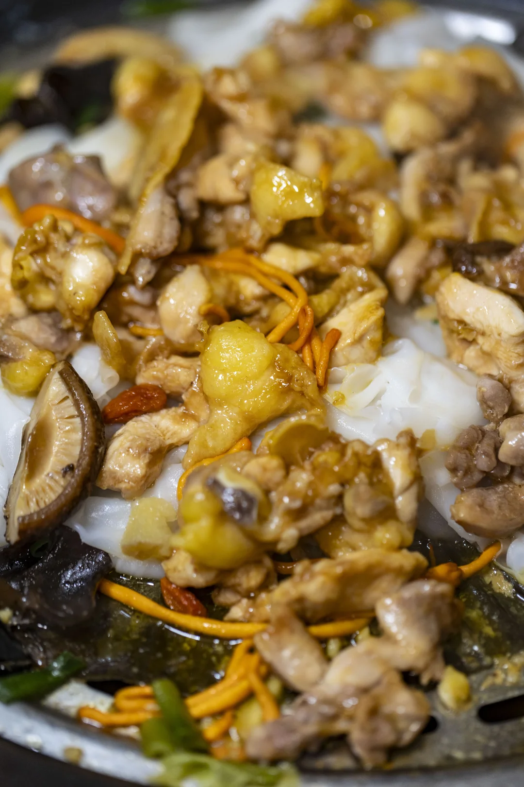 ✅桑拿大扇鸡:选养足200天的走地鸡,加虫草花、红枣一起蒸,鸡肉嫩到爆汁,鸡皮爽滑得弹牙,精准拿捏“鸡有鸡味”的岭南风味。蘸点酱油就是最地道的农家味!